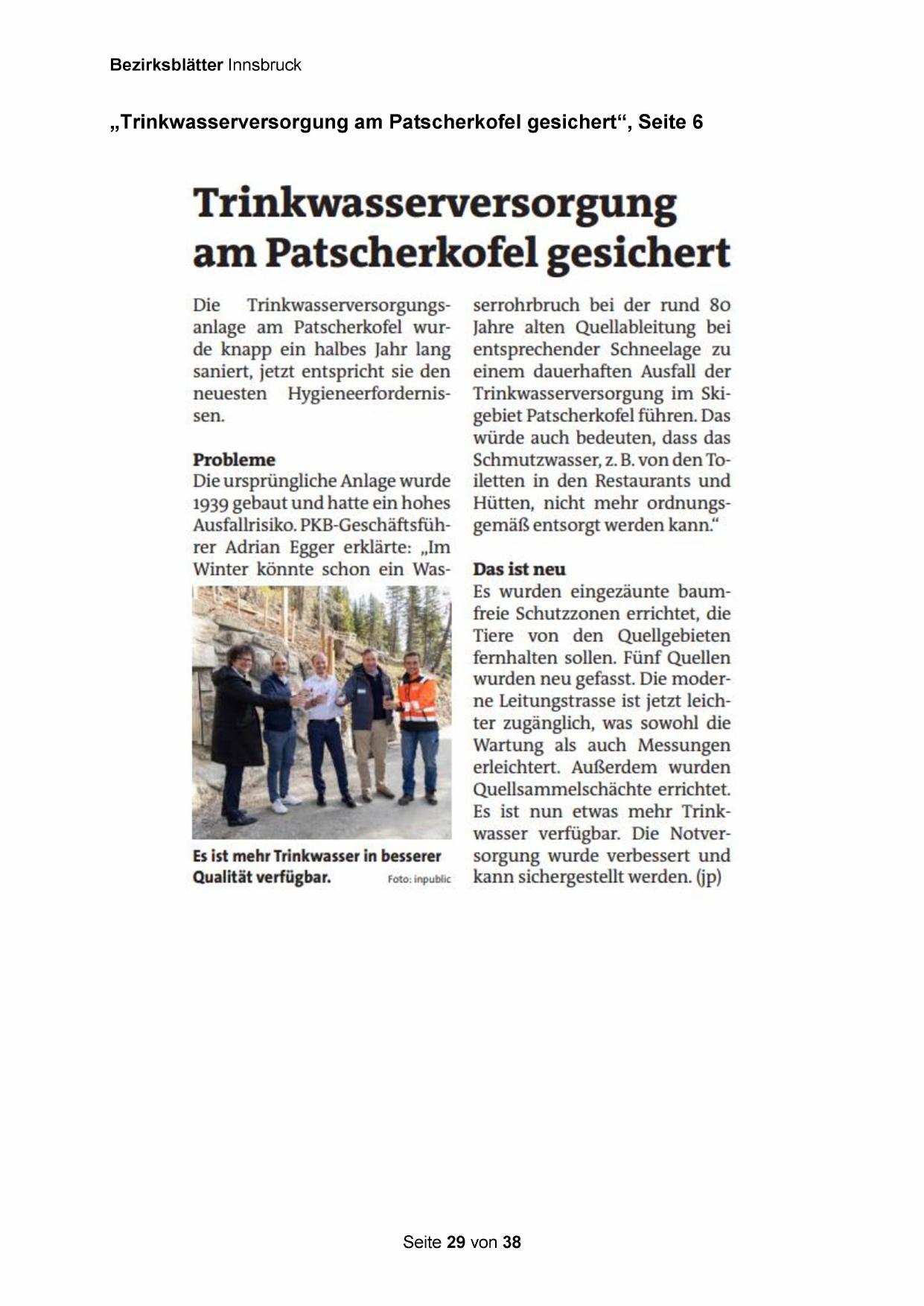„Trinkwasserversorgung am Patscherkofel gesichert“, Seite 6