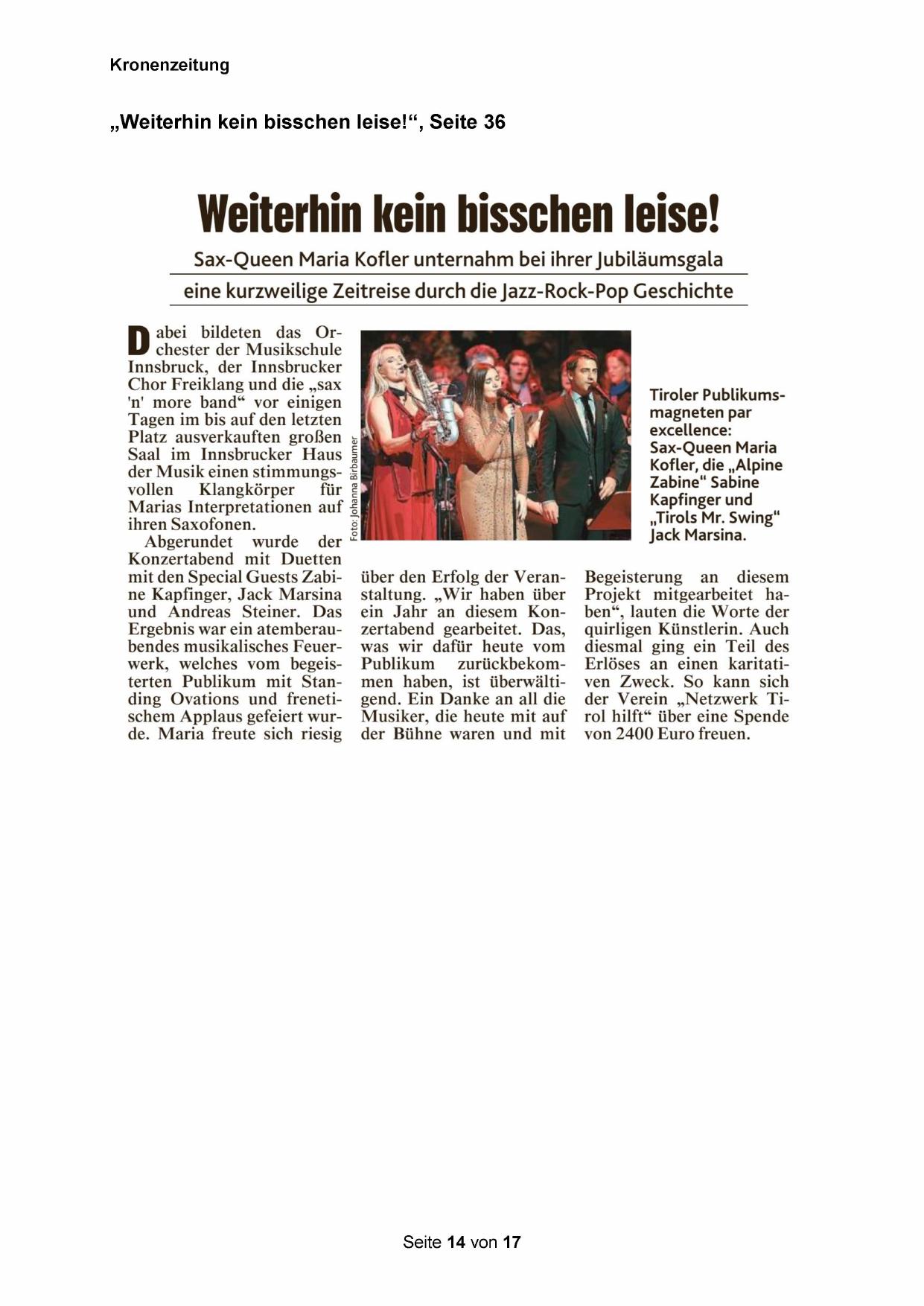 Sax-Queen Maria Kofler unternahm bei ihrer Jubiläumsgala