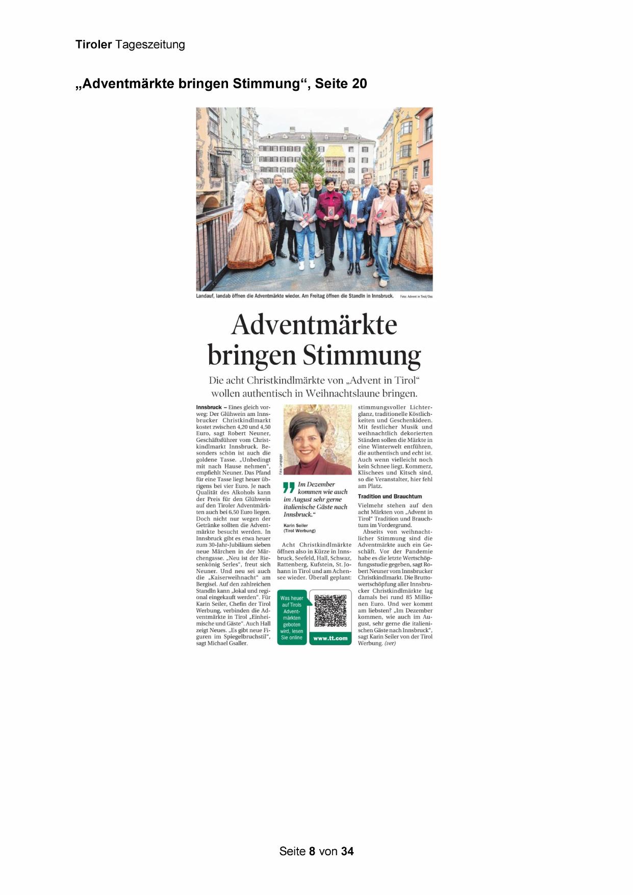 Werbung, verbinden die Adventmärkte in Tirol „Einheimische und Gäste“. Auch Hall