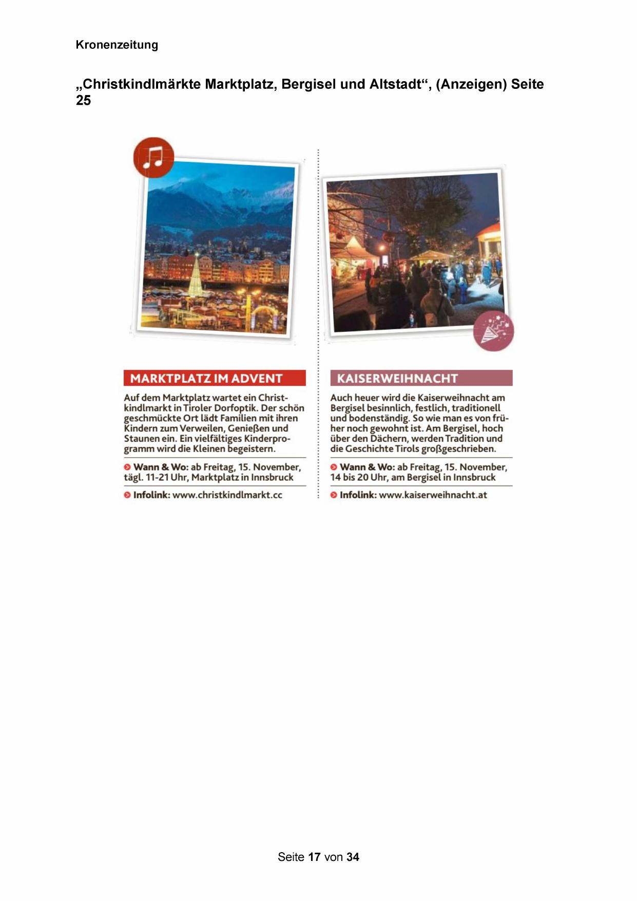 „Christkindlmärkte Marktplatz, Bergisel und Altstadt“, (Anzeigen) Seite