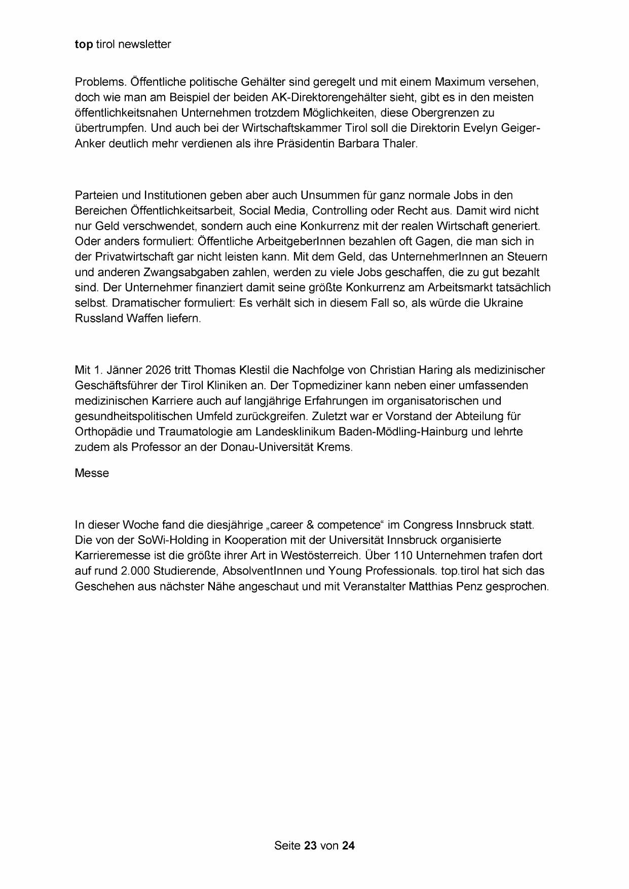 übertrumpfen. Und auch bei der Wirtschaftskammer Tirol soll die Direktorin Evelyn Geiger-
