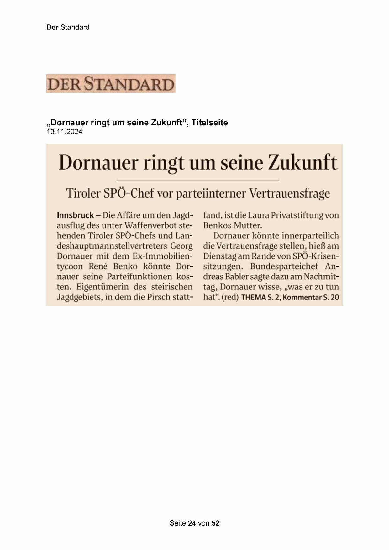 „Dornauer ringt um seine Zukunft“, Titelseite