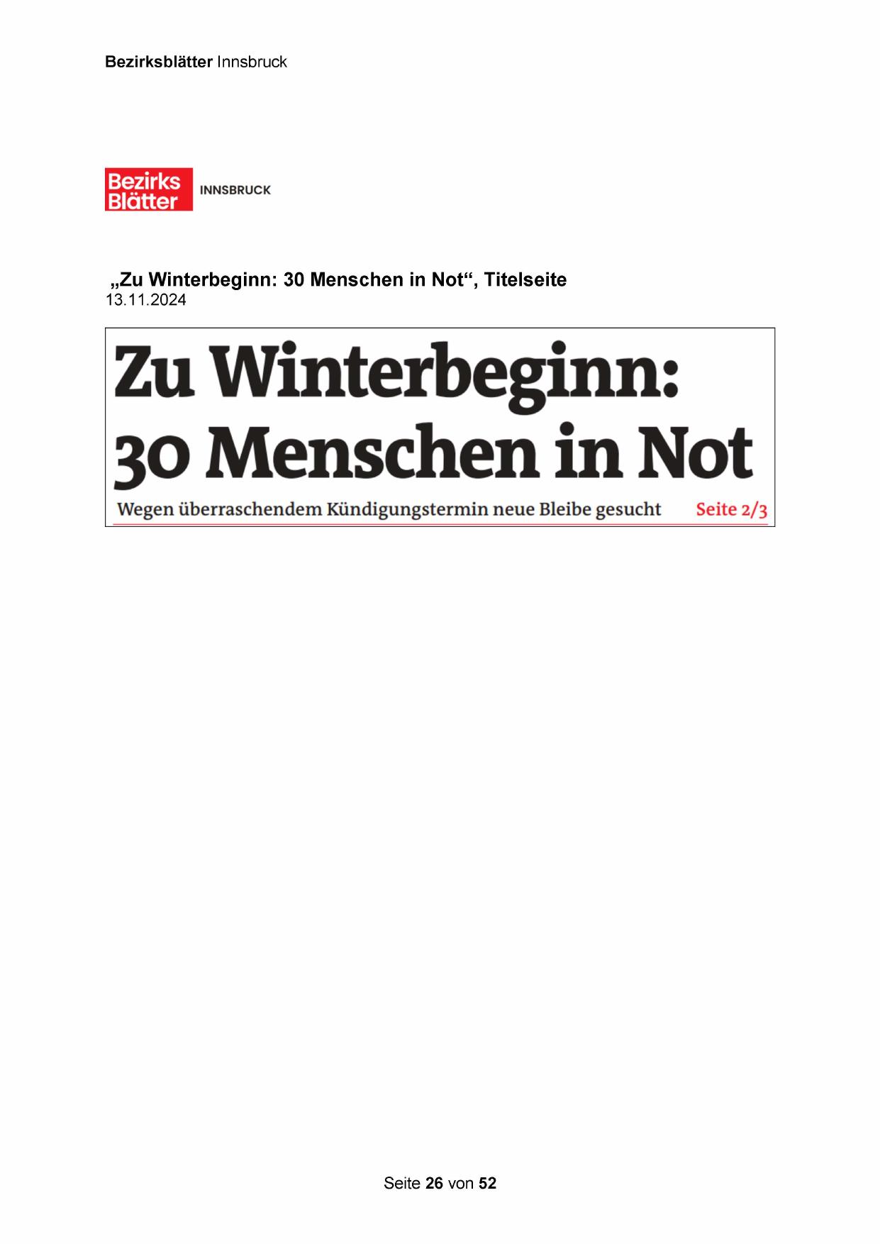 „Zu Winterbeginn: 30 Menschen in Not“, Titelseite