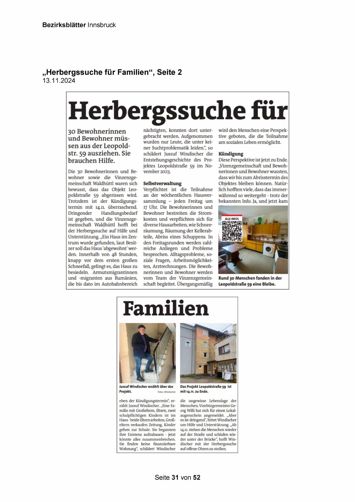 vom Team der Vinzenzgemeinschaft begleitet. Übergangsmäßig