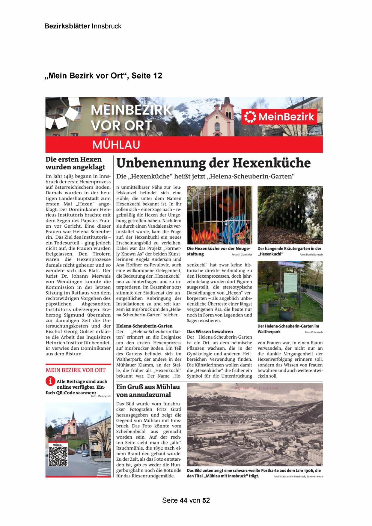 Installationen zu und seit kurzem ist Innsbruck um den „Helena-Scheuberin-Garten“ reicher.