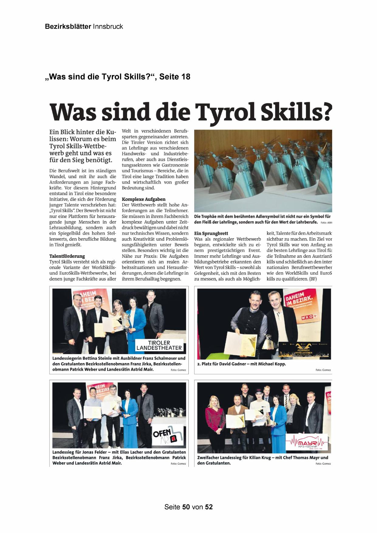 Tyrol Skills versteht sich als regionale Variante der WorldSkillsund EuroSkills-Wettbewerbe, bei