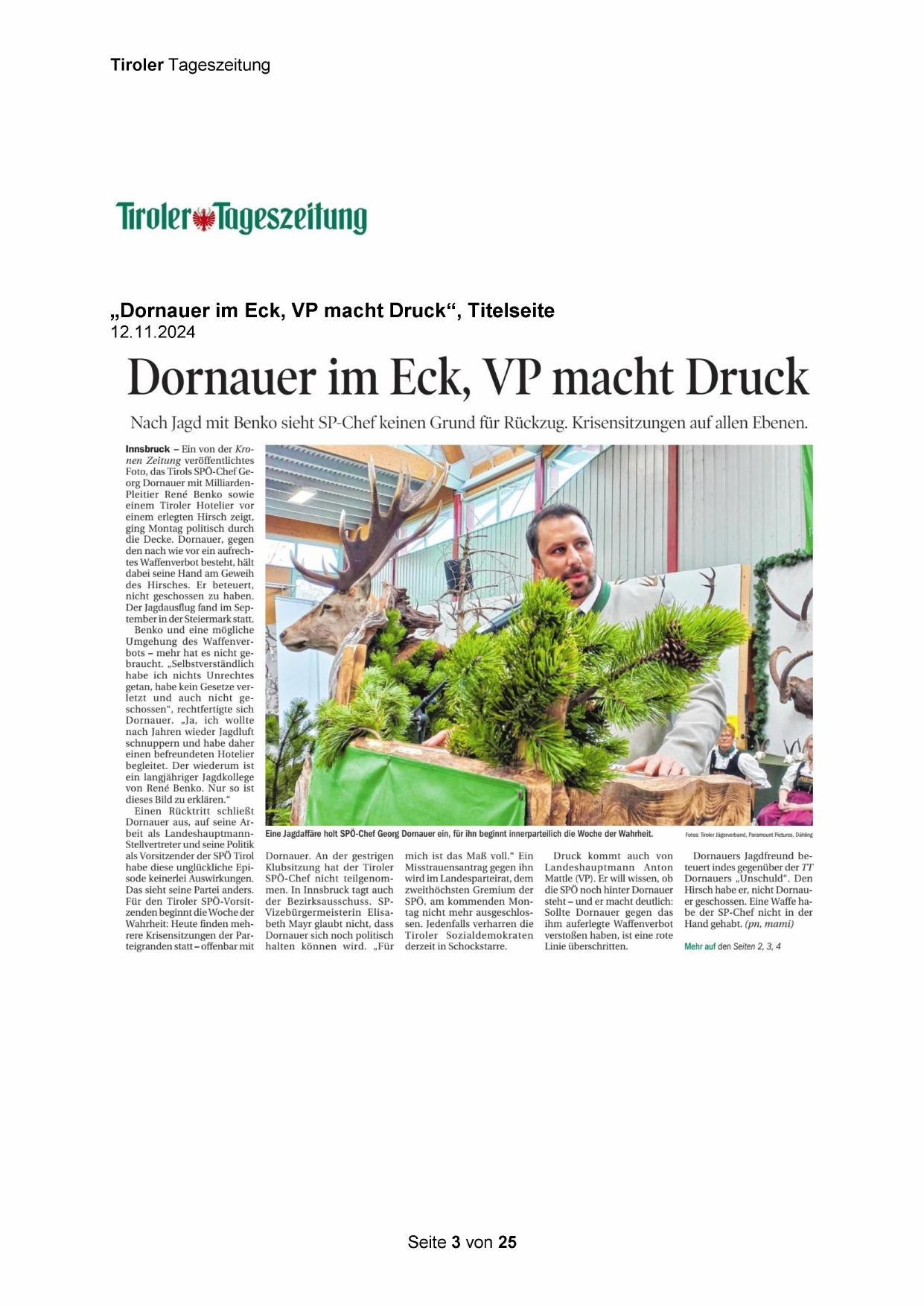 Eine Jagdaffäre holt SPÖ-Chef Georg Dornauer ein, für ihn beginnt innerparteilich die Woche der Wahrheit.