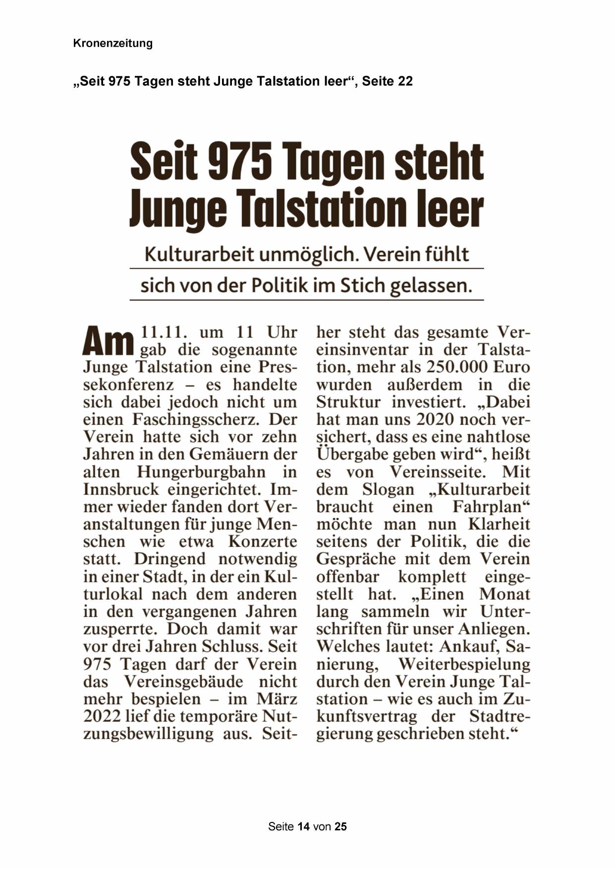 „Seit 975 Tagen steht Junge Talstation leer“, Seite 22