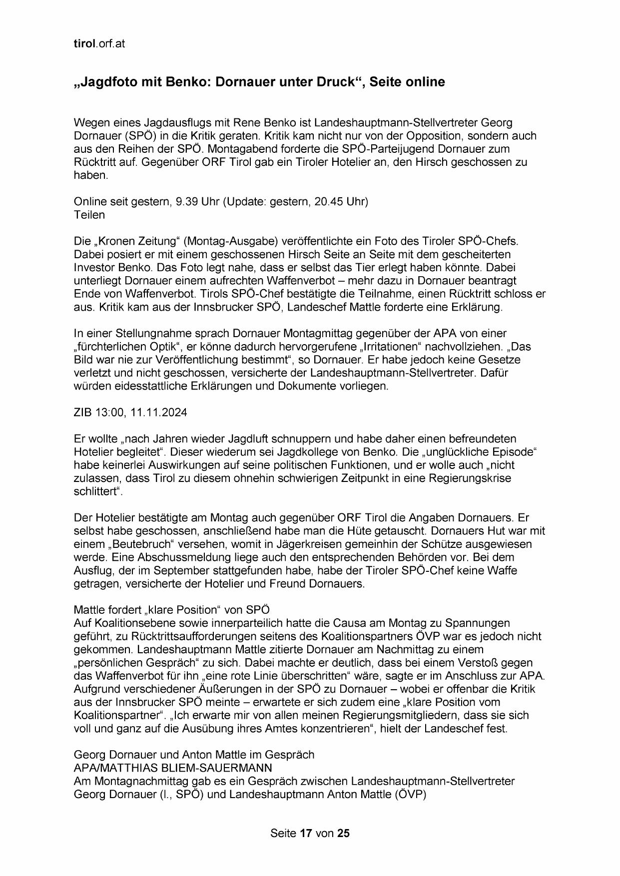 „Jagdfoto mit Benko: Dornauer unter Druck“, Seite online
