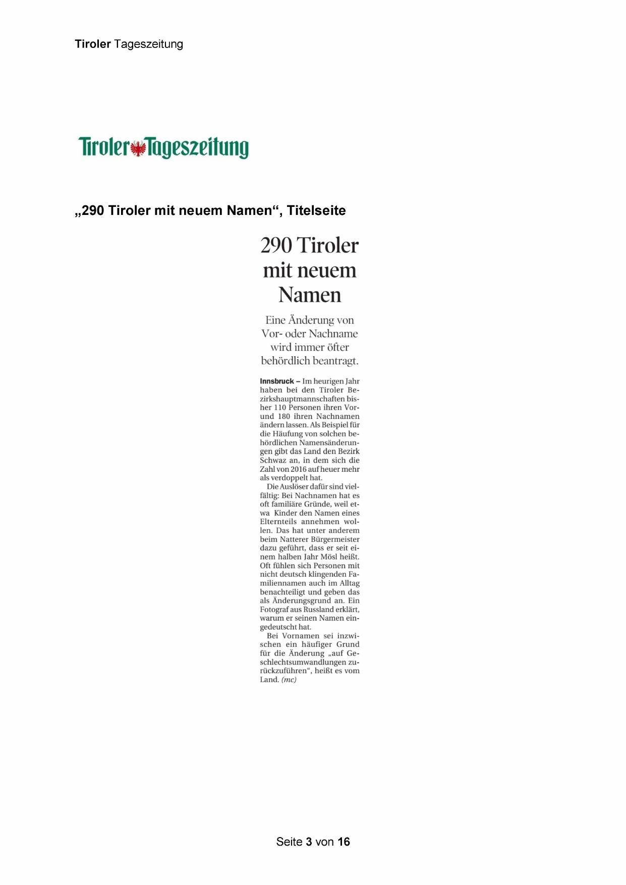 haben bei den Tiroler Bezirkshauptmannschaften bisher 110 Personen ihren Vorund 180 ihren Nachnamen