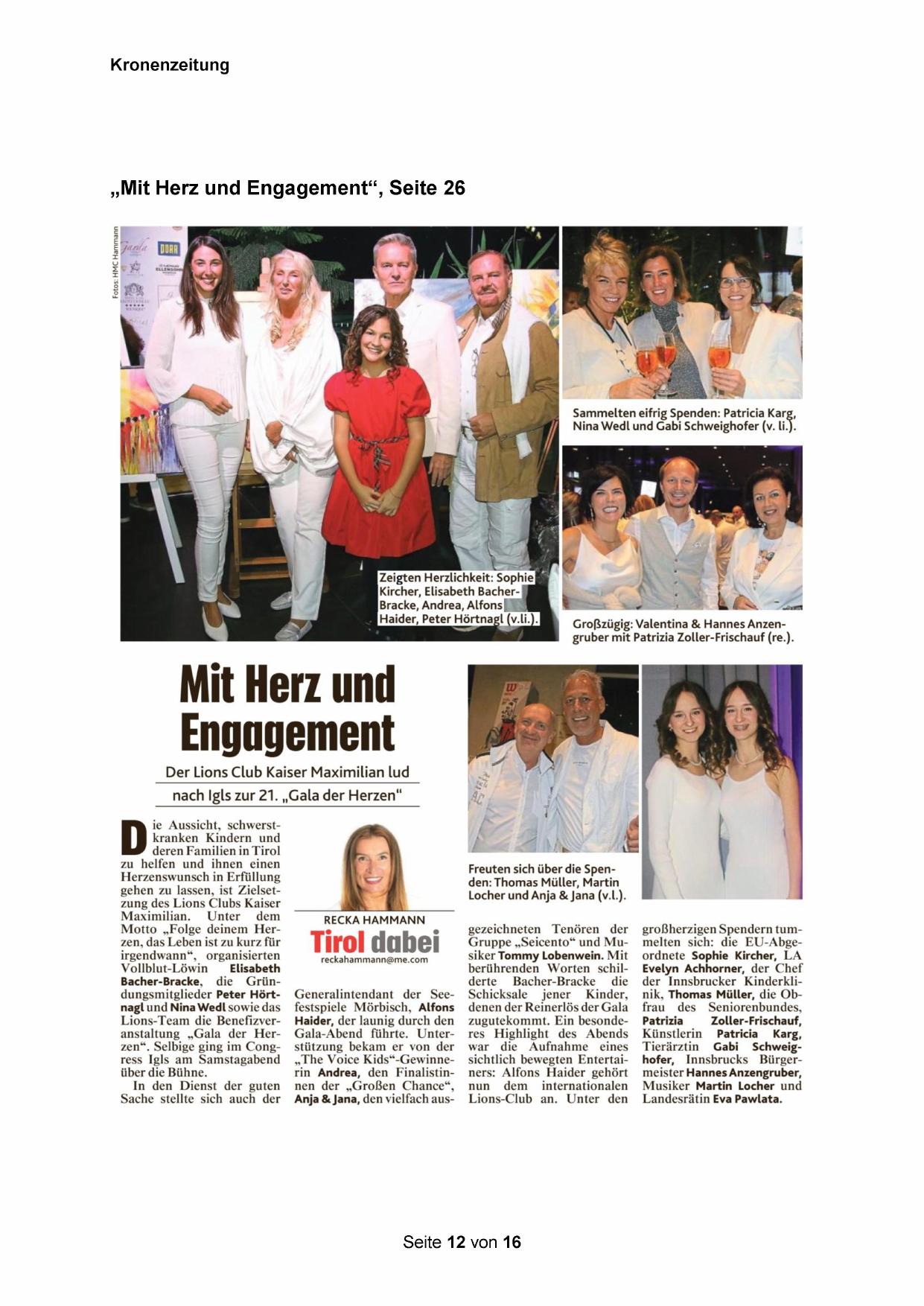 Lions-Team die Benefizveranstaltung „Gala der Herzen“. Selbige ging im Congress Igls am Samstagabend