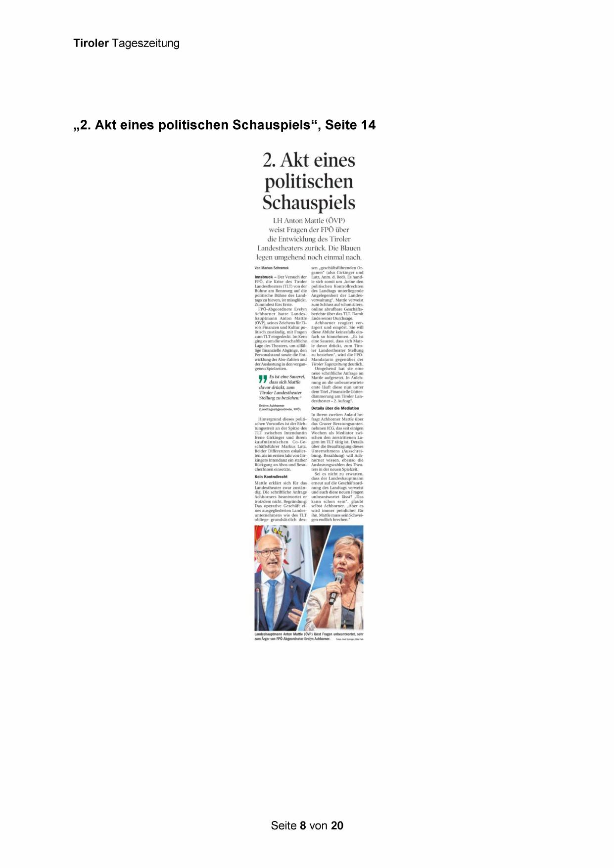 dem Titel „Finanzielle Götterdämmerung am Tiroler Landestheater — 2. Aufzug“.