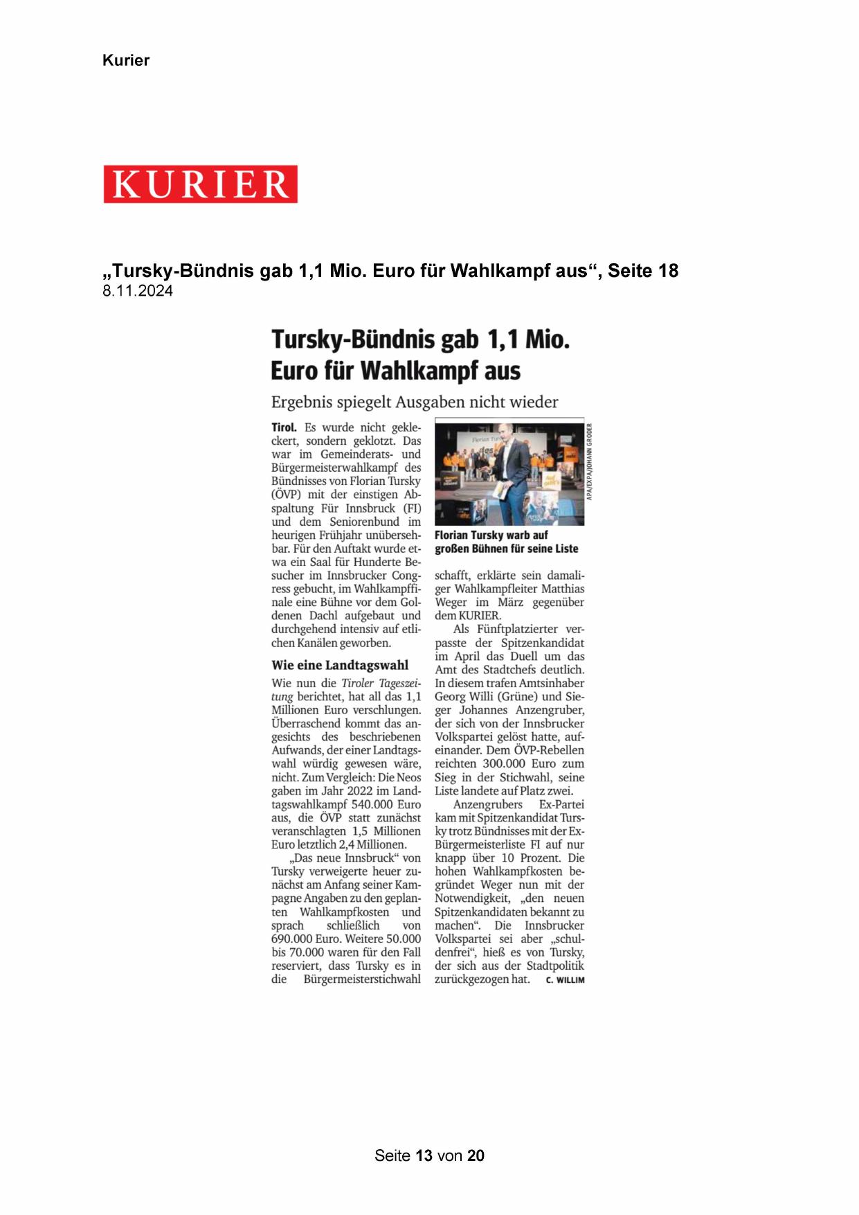 „Tursky-Bündnis gab 1,1 Mio. Euro für Wahlkampf aus“, Seite 18