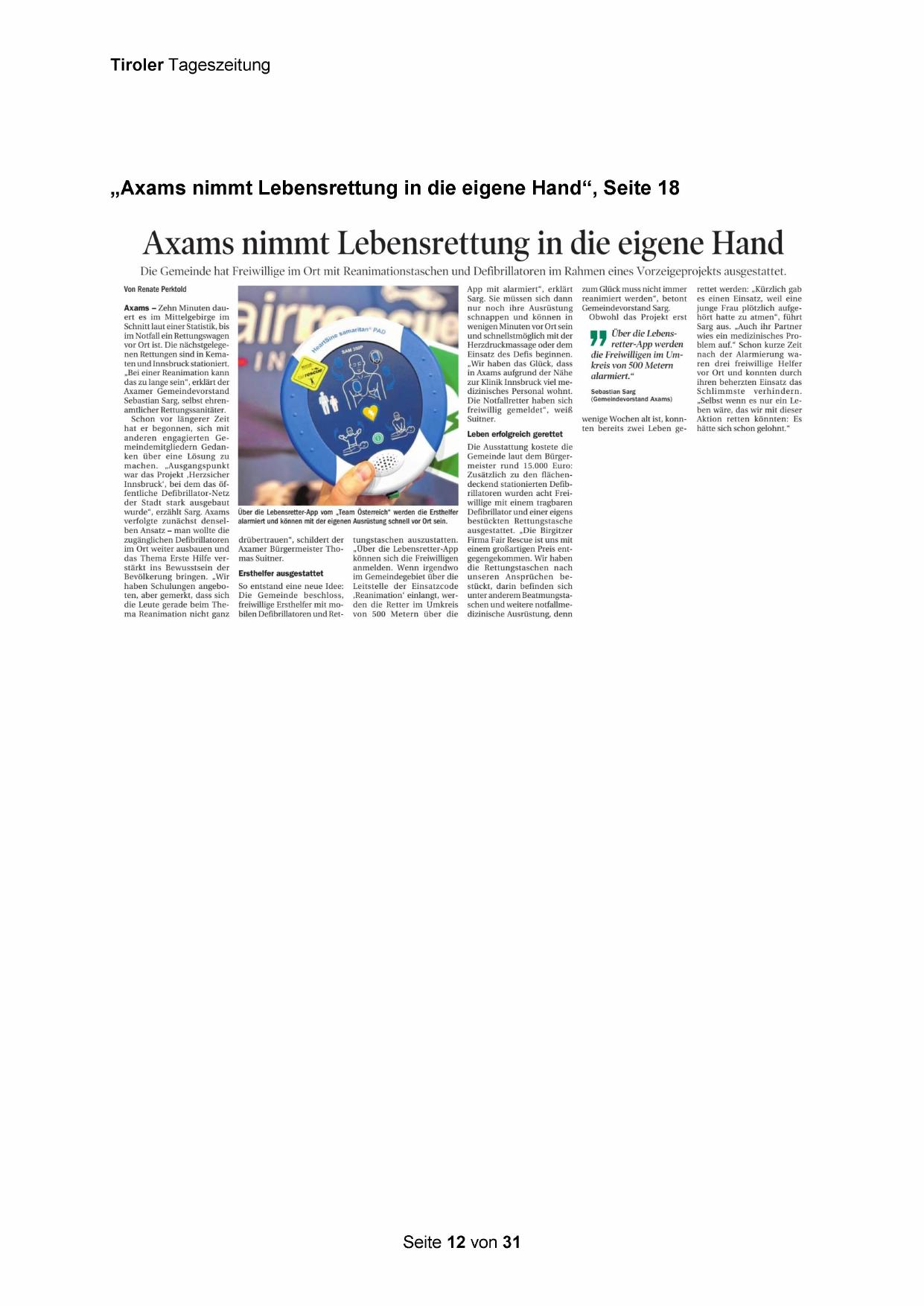 „Axams nimmt Lebensrettung in die eigene Hand“, Seite 18