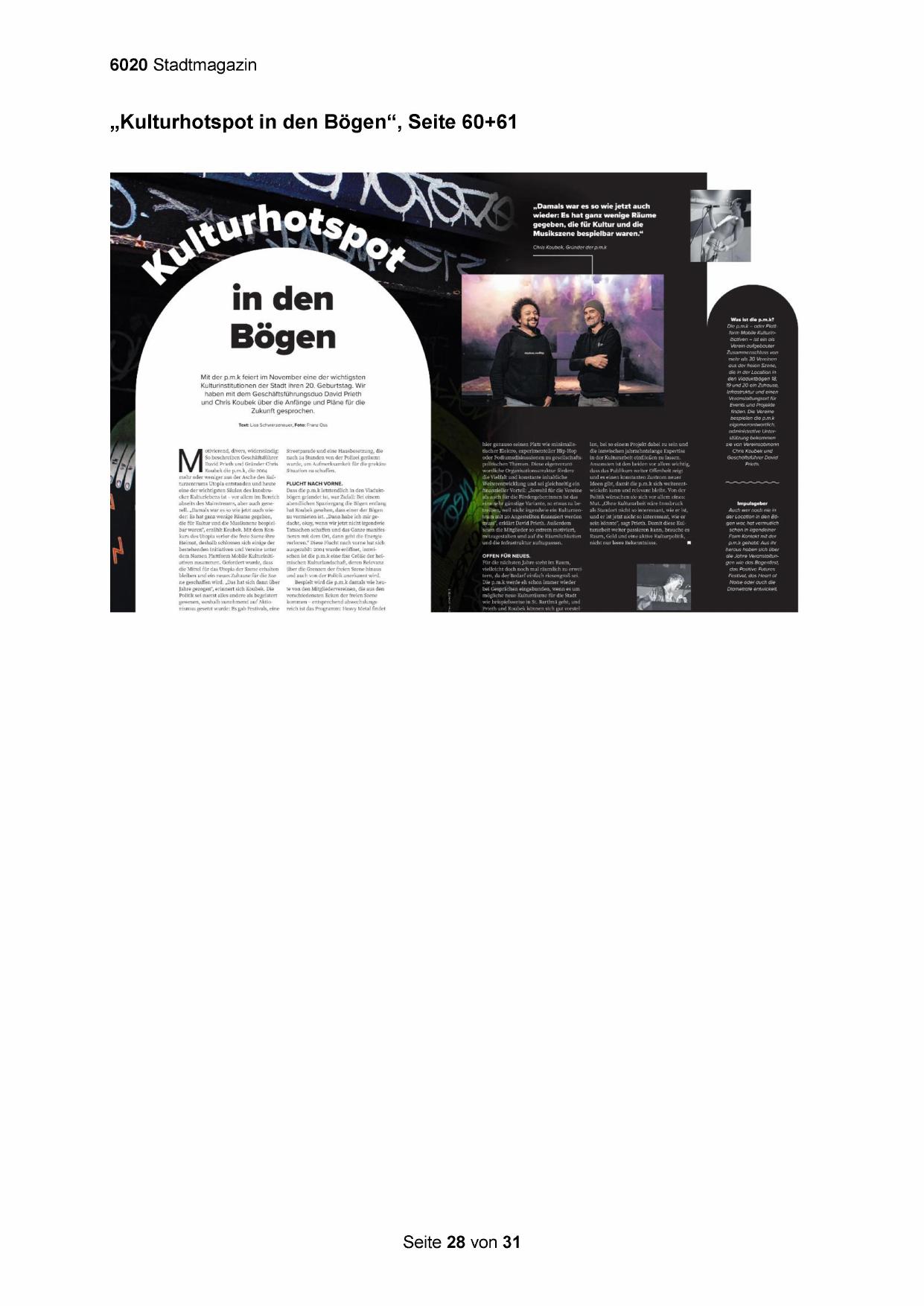 „Kulturhotspot in den Bögen“, Seite 60+61
