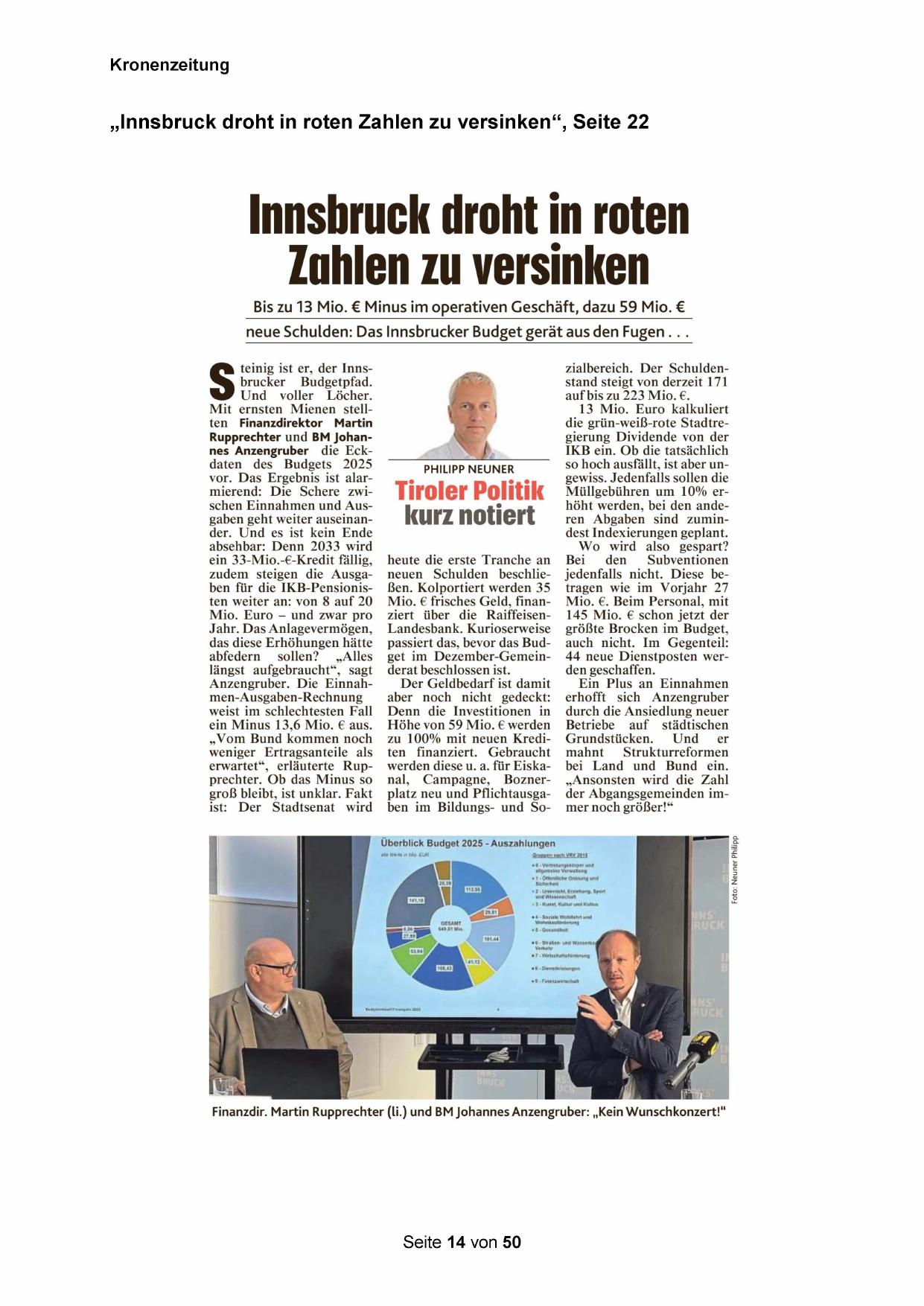 „Innsbruck droht in roten Zahlen zu versinken“, Seite 22