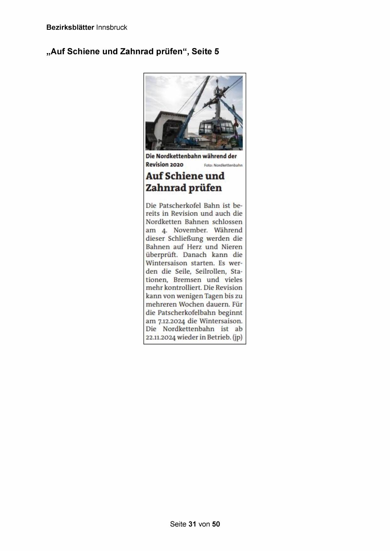 Die Patscherkofel Bahn ist bereits in Revision und auch die