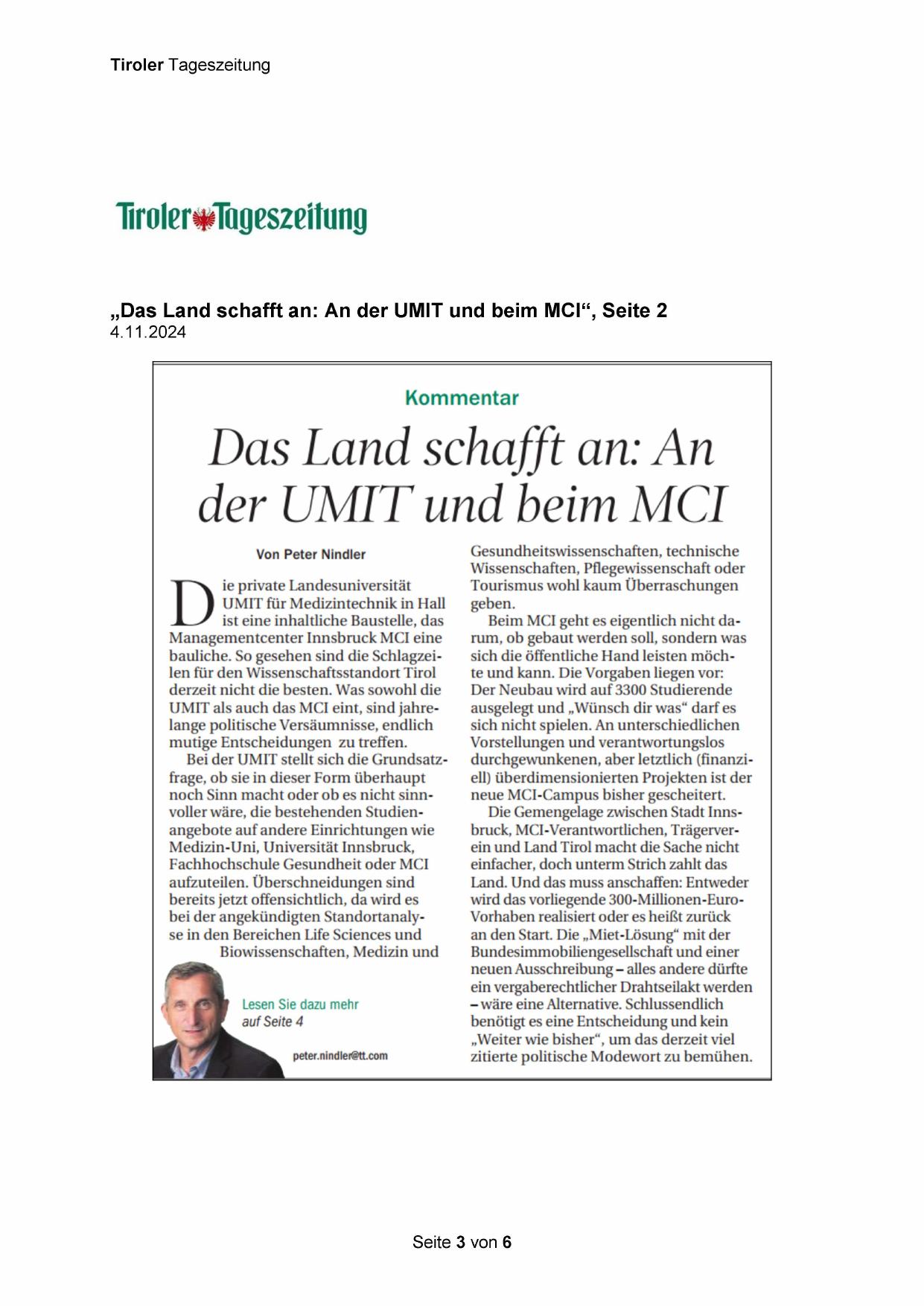 „Das Land schafft an: An der UMIT und beim MCI“, Seite 2