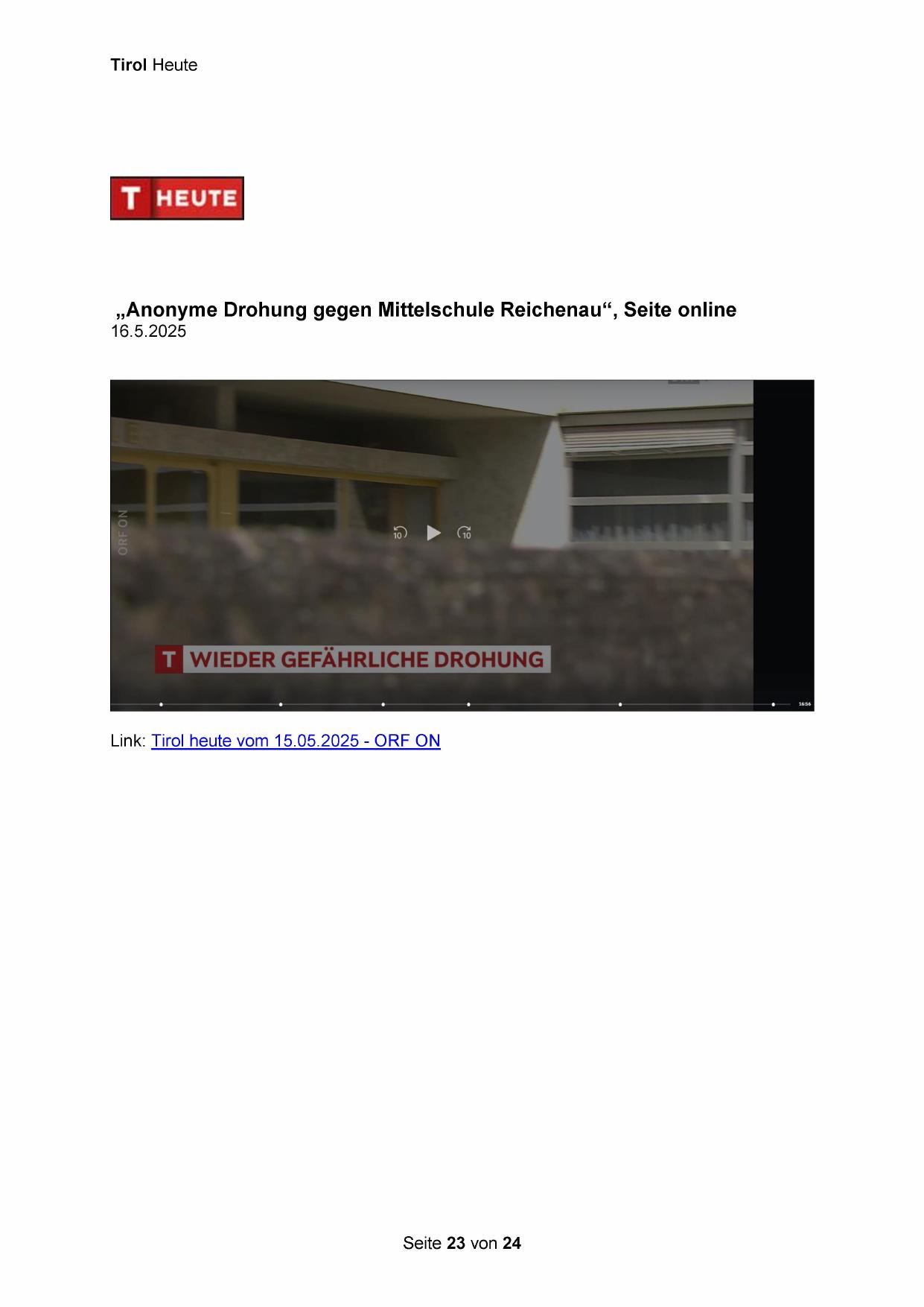 „Anonyme Drohung gegen Mittelschule Reichenau“, Seite online