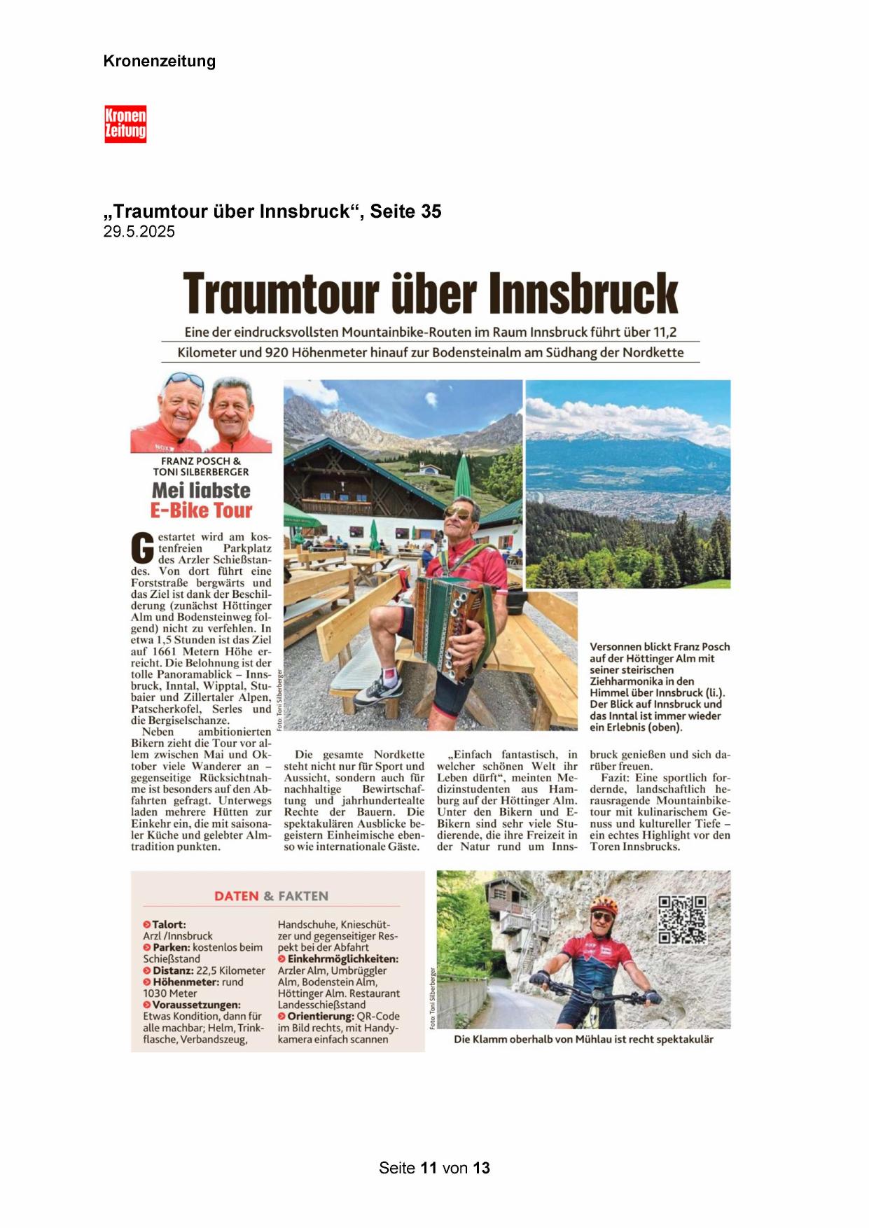 Eine der eindrucksvollsten Mountainbike-Routen im Raum Innsbruck führt über 11,2