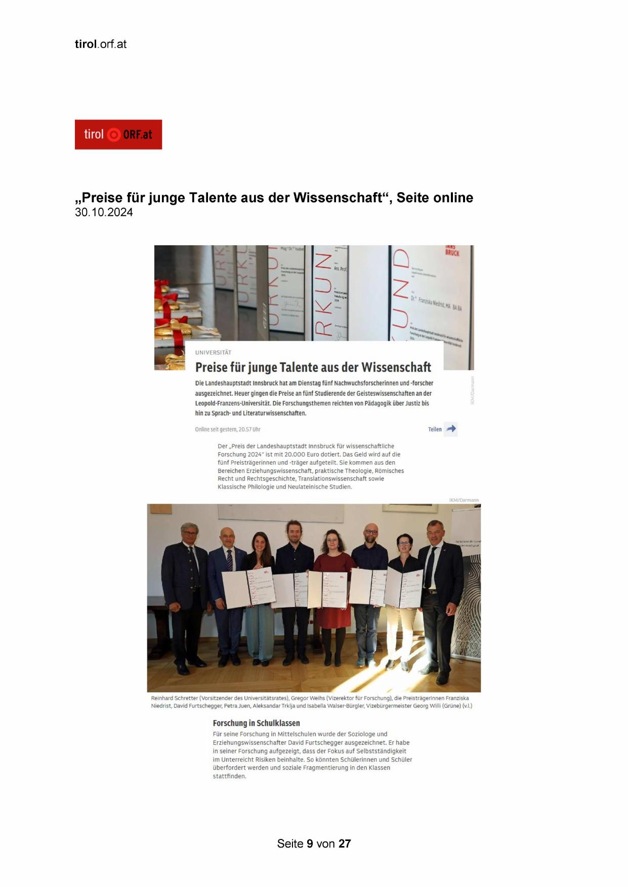 Erziehungswissenschafter David Furtschegger ausgezeichnet. Er habe