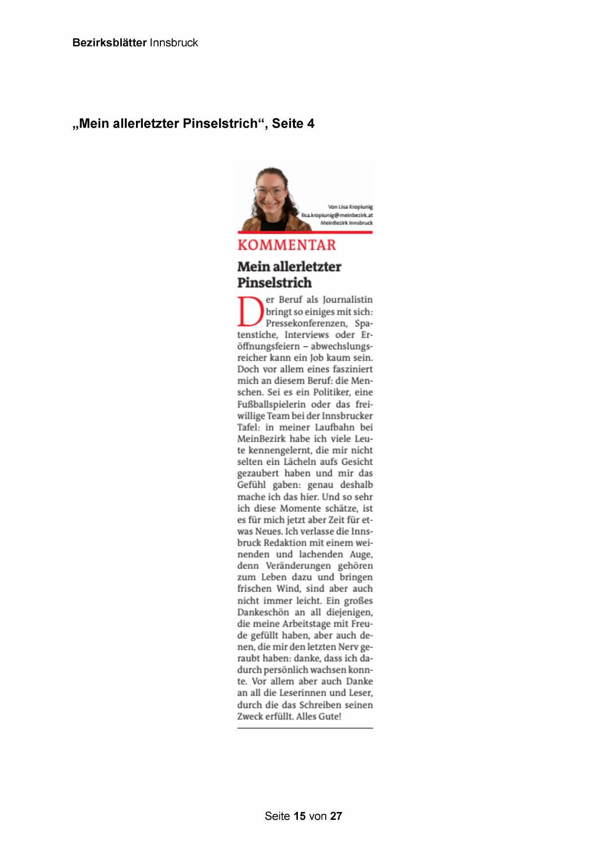 es für mich jetzt aber Zeit für etwas Neues. Ich verlasse die Innsbruck Redaktion mit einem weinenden und lachenden Auge,