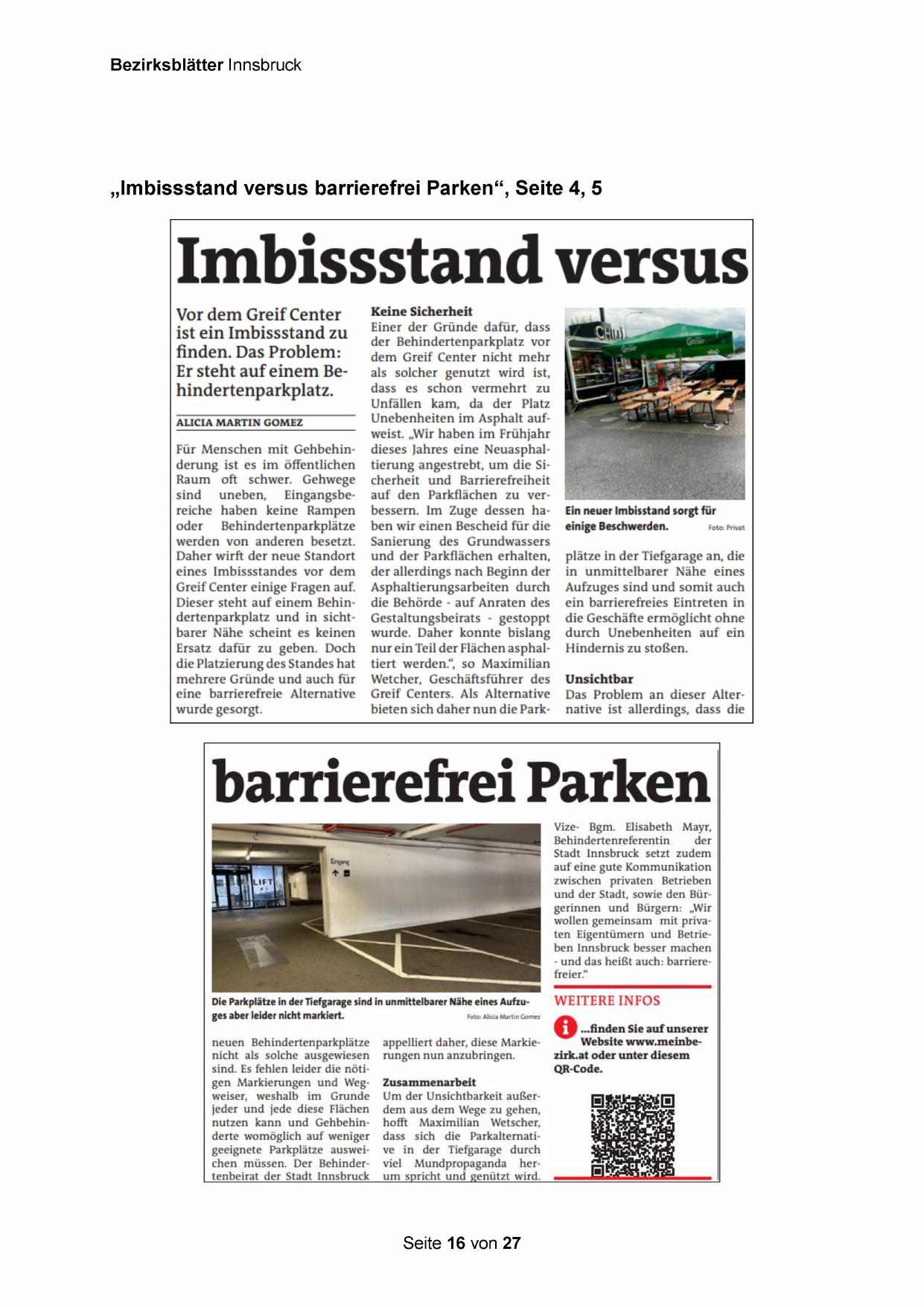 „Imbissstand versus barrierefrei Parken“, Seite 4, 5