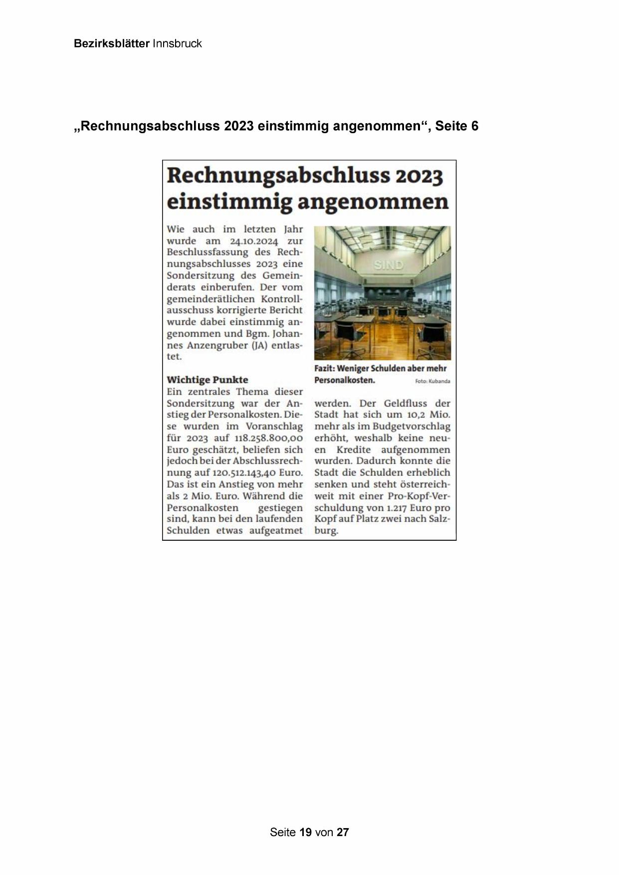 wurde dabei einstimmig angenommen und Bgm. Johannes Anzengruber (JA) entlastet.