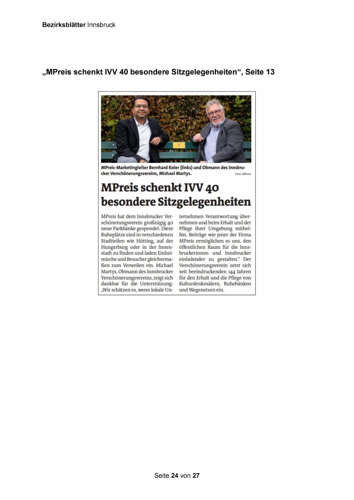 „MPreis schenkt IVV 40 besondere Sitzgelegenheiten“, Seite 13