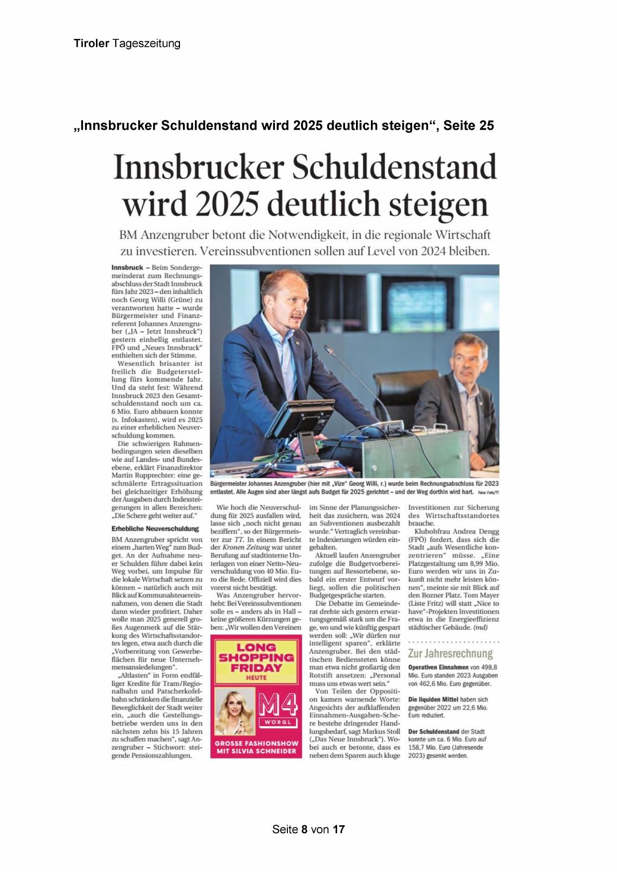 „Innsbrucker Schuldenstand wird 2025 deutlich steigen“, Seite 25