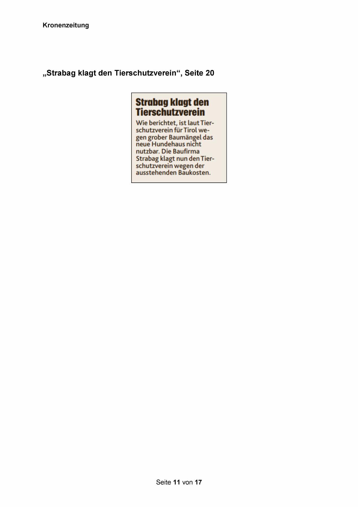 „Strabag klagt den Tierschutzverein“, Seite 20