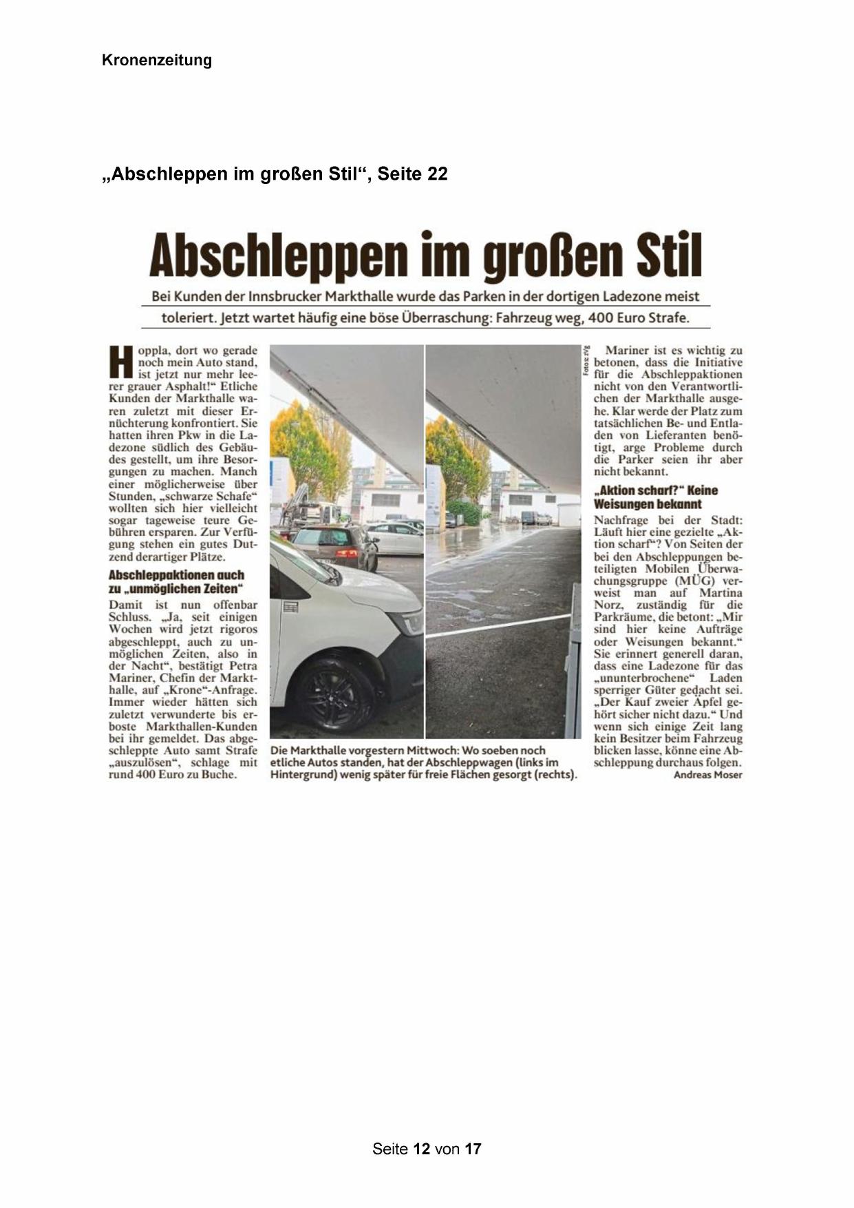 Bei Kunden der Innsbrucker Markthalle wurde das Parken in der dortigen Ladezone meist