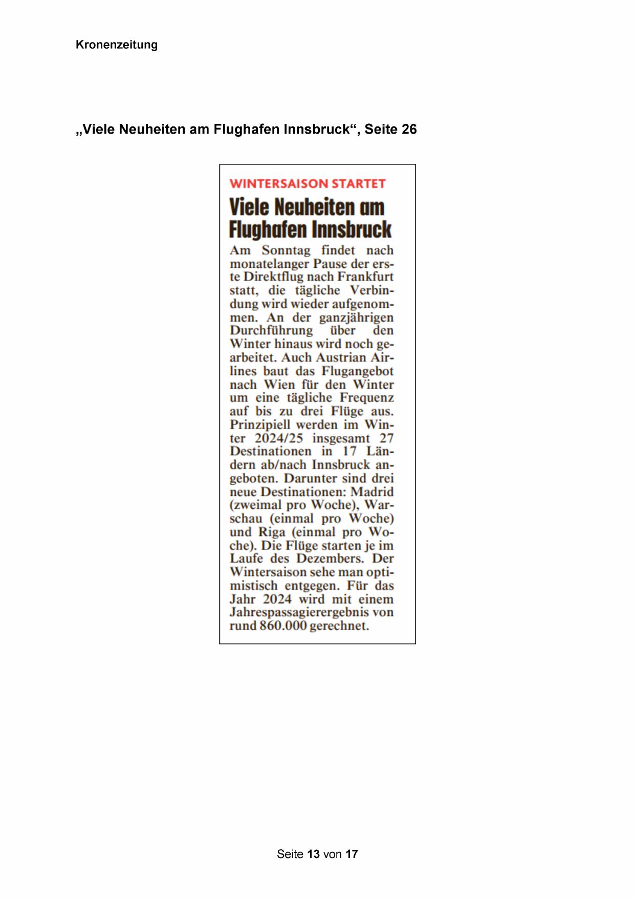 „Viele Neuheiten am Flughafen Innsbruck“, Seite 26