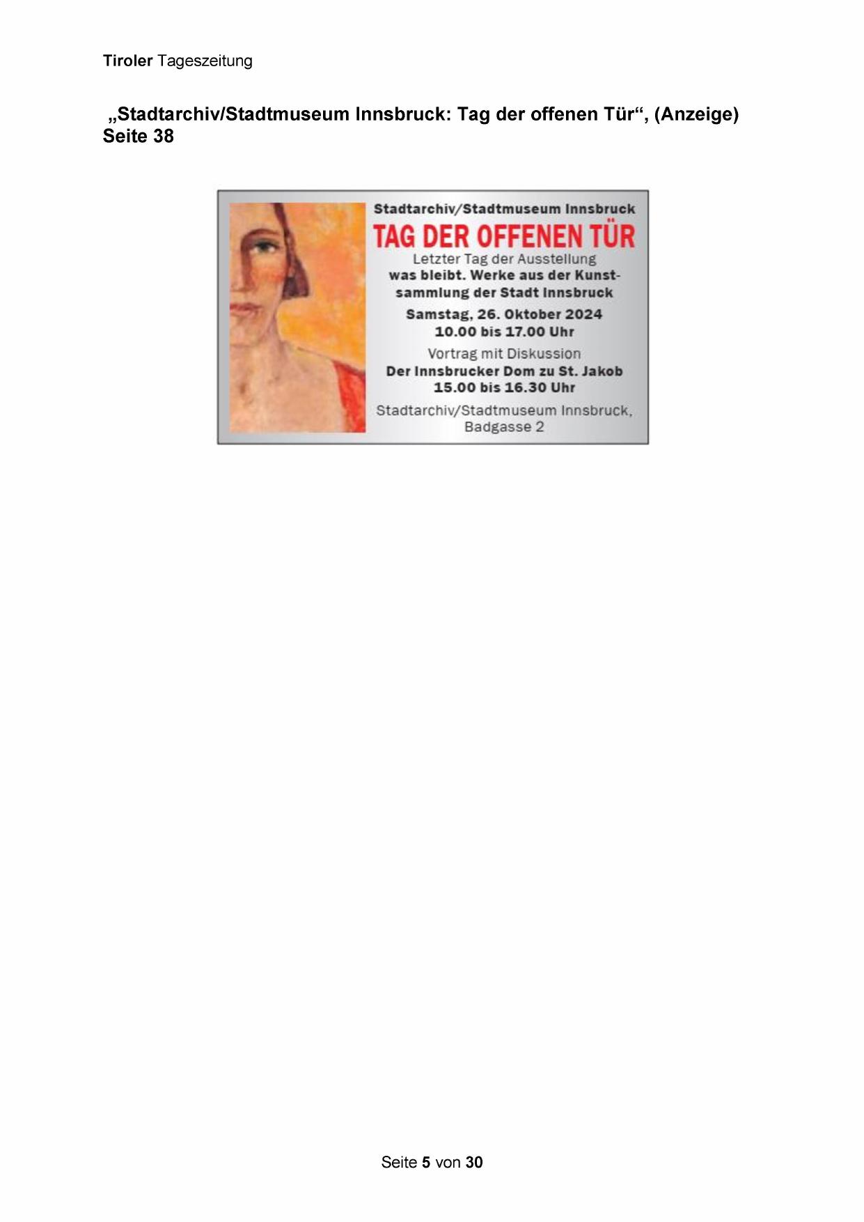 „Stadtarchiv/Stadtmuseum Innsbruck: Tag der offenen Tür“, (Anzeige)