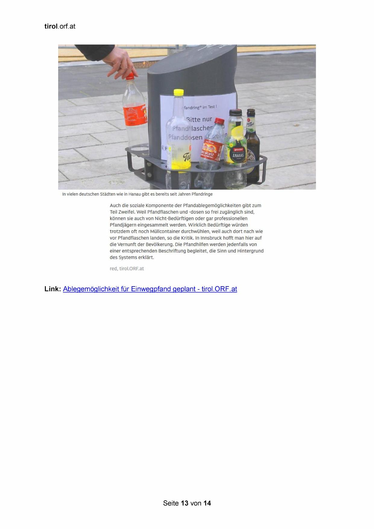 vor Pfandflaschen landen, so die Kritik. In Innsbruck hofft man hier auf