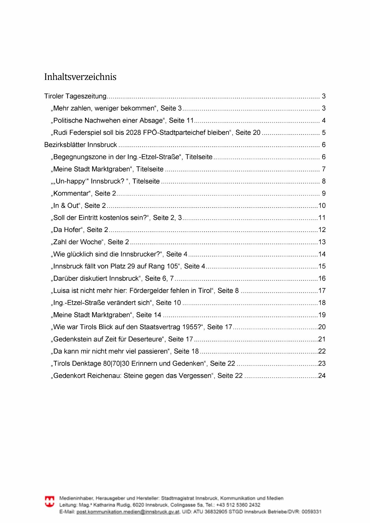 Medieninhaber, Herausgeber und Hersteller: Stadtmagistrat Innsbruck, Kommunikation und Medien