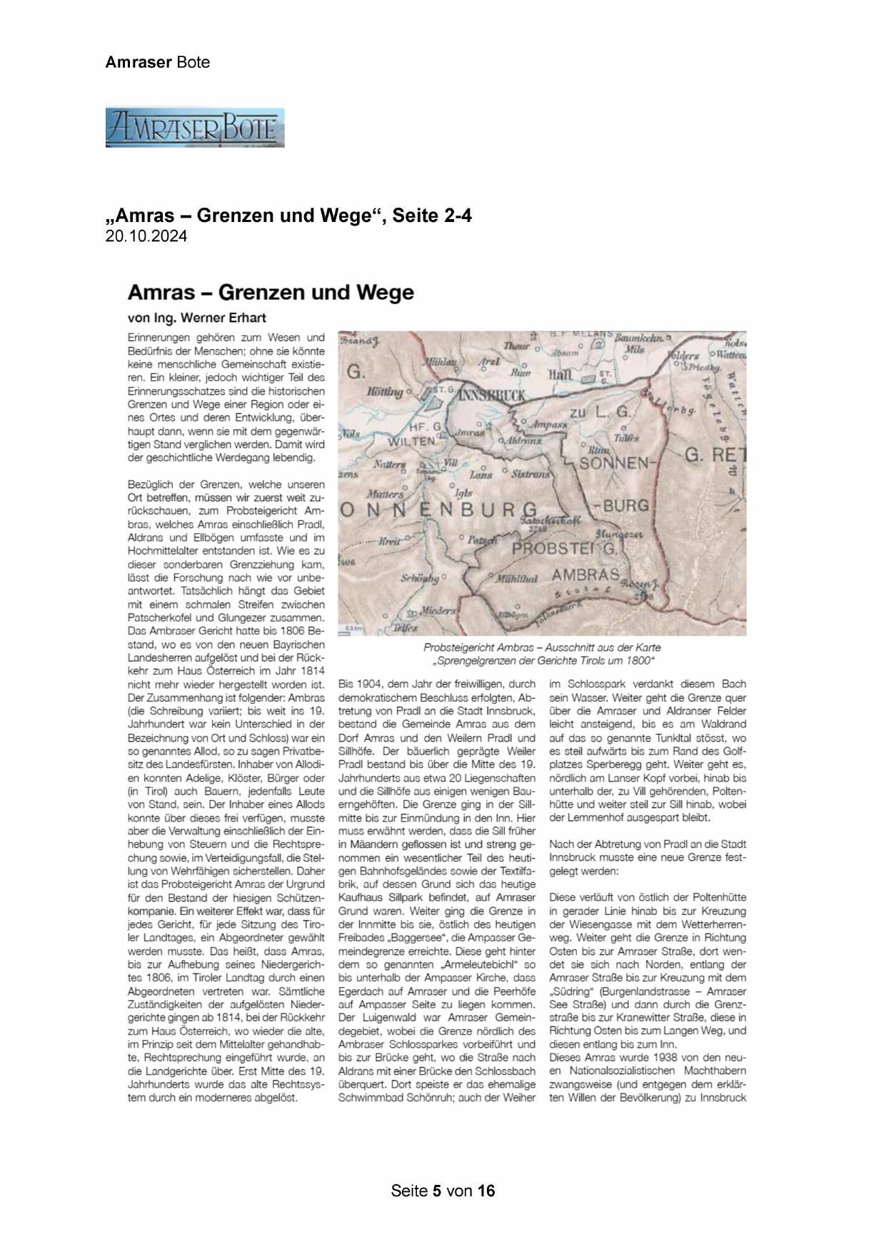 Ort betreffen, müssen wir zuerst weit zurückschauen, zum Probsteigericht Ambras, welches Amras einschließlich Pradl,
