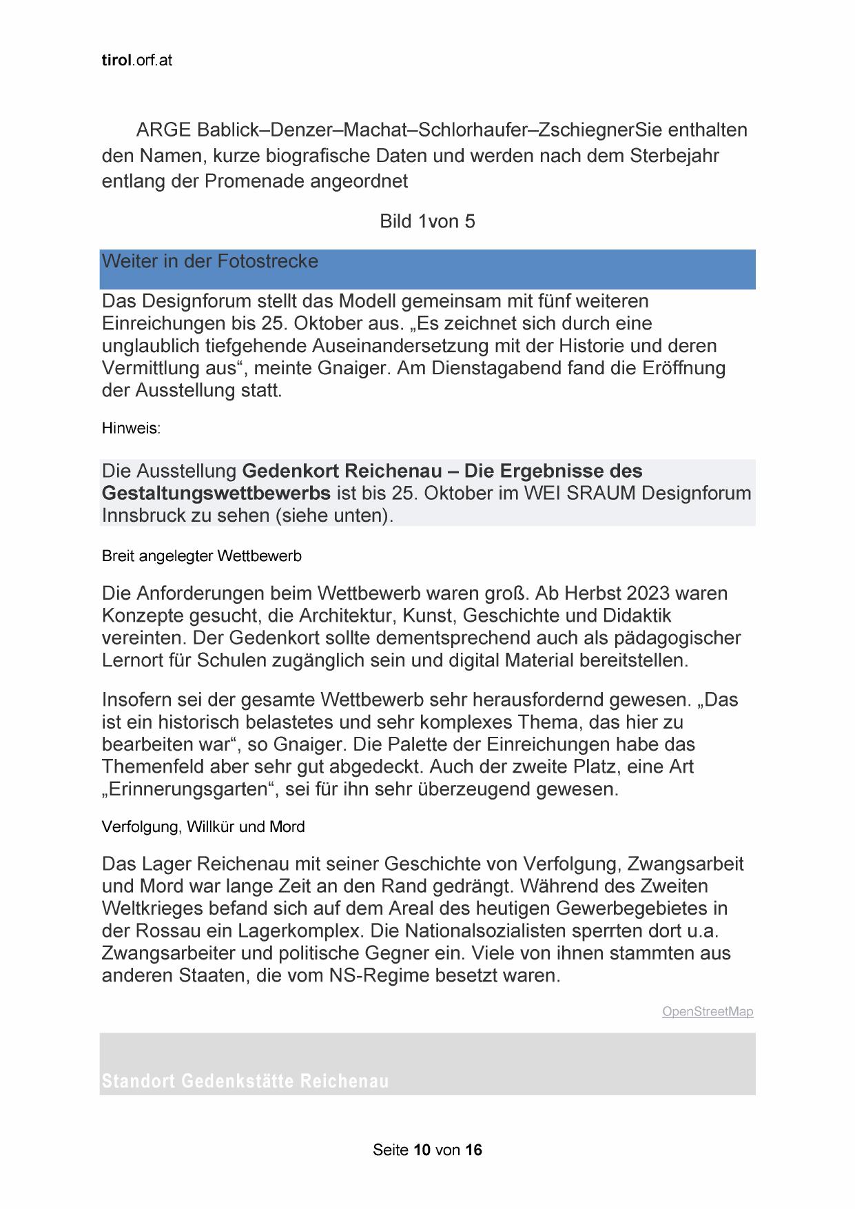 Vermittlung aus“, meinte Gnaiger. Am Dienstagabend fand die Eröffnung