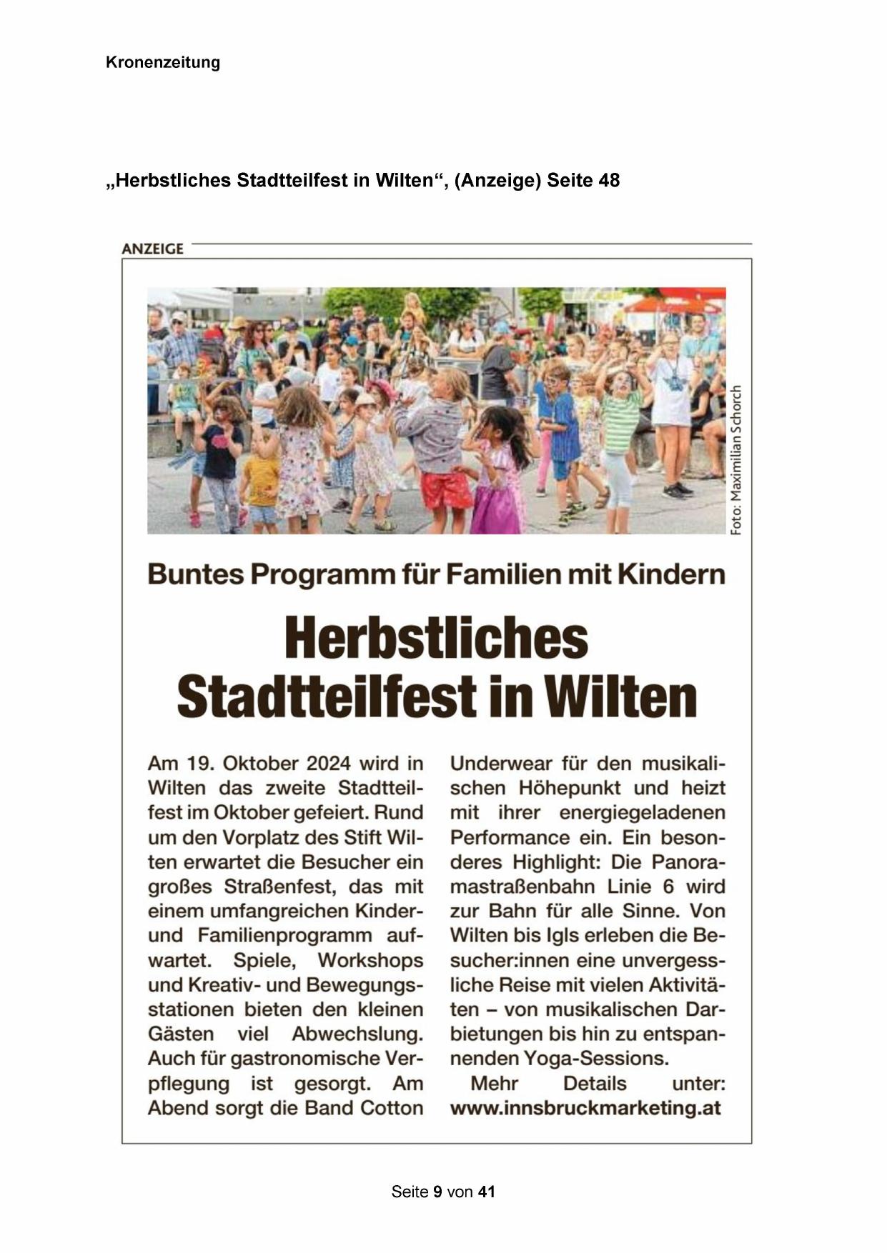 „Herbstliches Stadtteilfest in Wilten“, (Anzeige) Seite 48