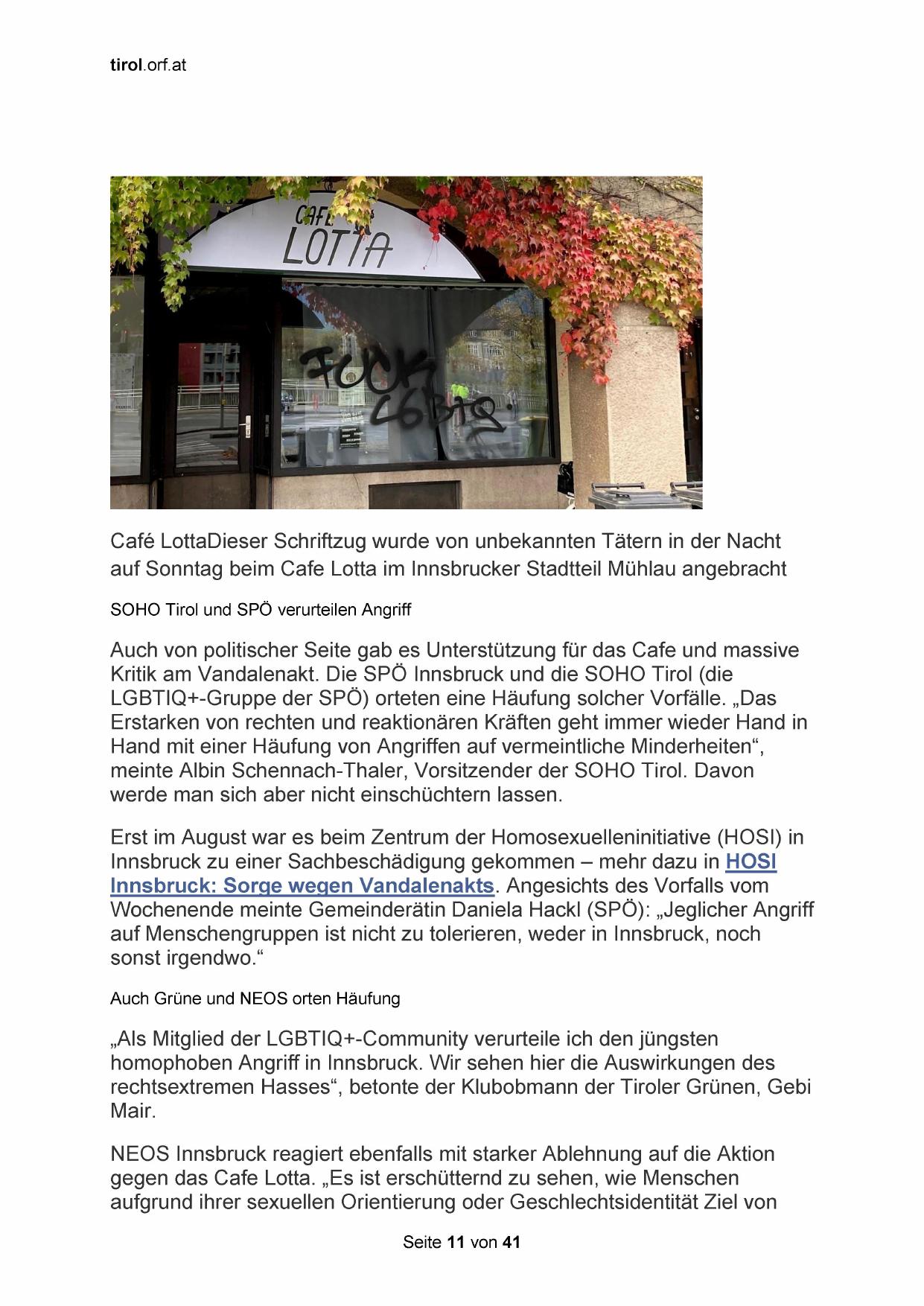 Innsbruck zu einer Sachbeschädigung gekommen — mehr dazu in HOSI
