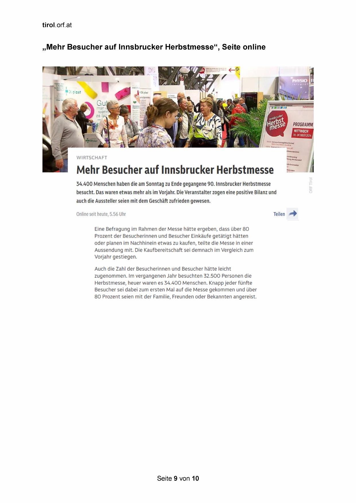 „Mehr Besucher auf Innsbrucker Herbstmesse“, Seite online