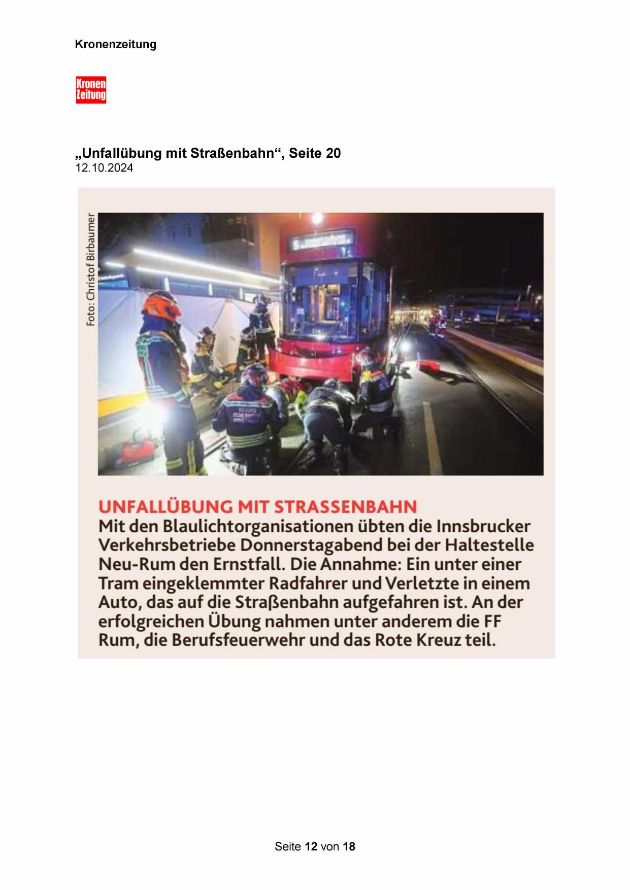 Rum, die Berufsfeuerwehr und das Rote Kreuz teil.