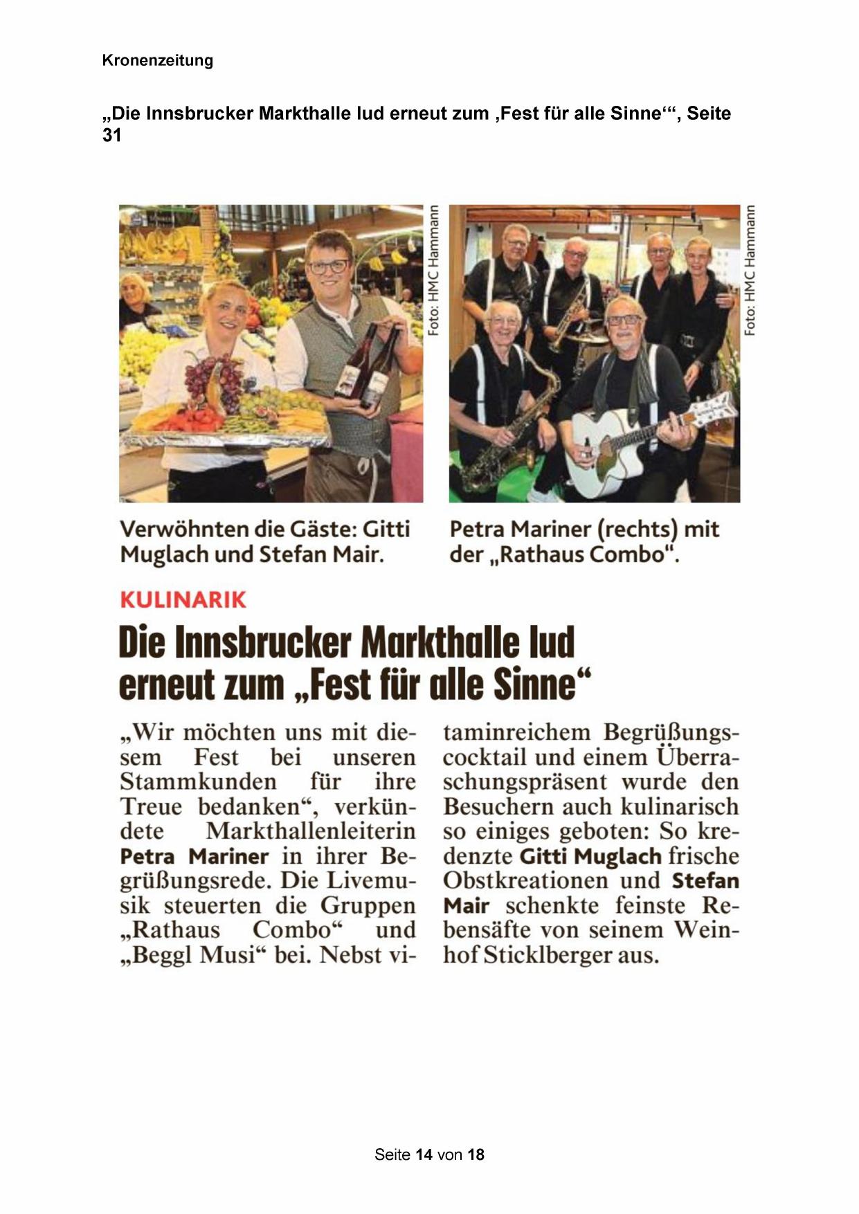 „Die Innsbrucker Markthalle lud erneut zum ‚Fest für alle Sinne*“, Seite