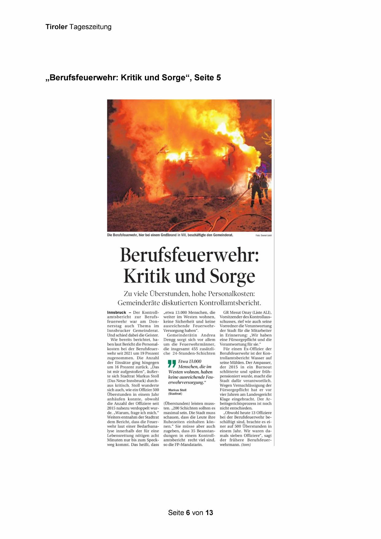 „Berufsfeuerwehr: Kritik und Sorge“, Seite 5
