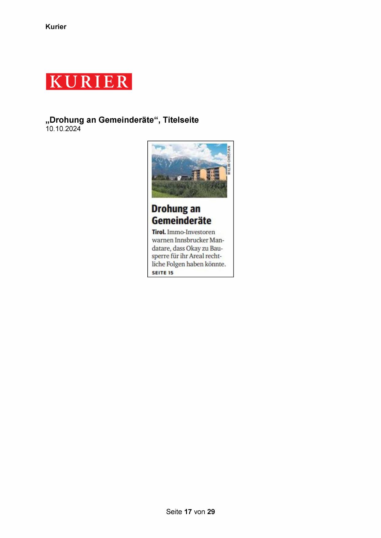 warnen Innsbrucker Mandatare, dass Okay zu Bausperre für ihr Areal rechtliche Folgen haben könnte.