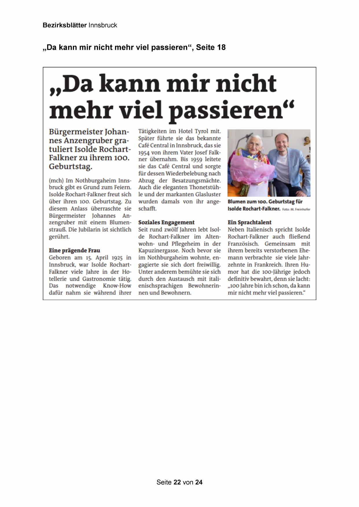 (mch) Im Nothburgaheim Innsbruck gibt es Grund zum Feiern.