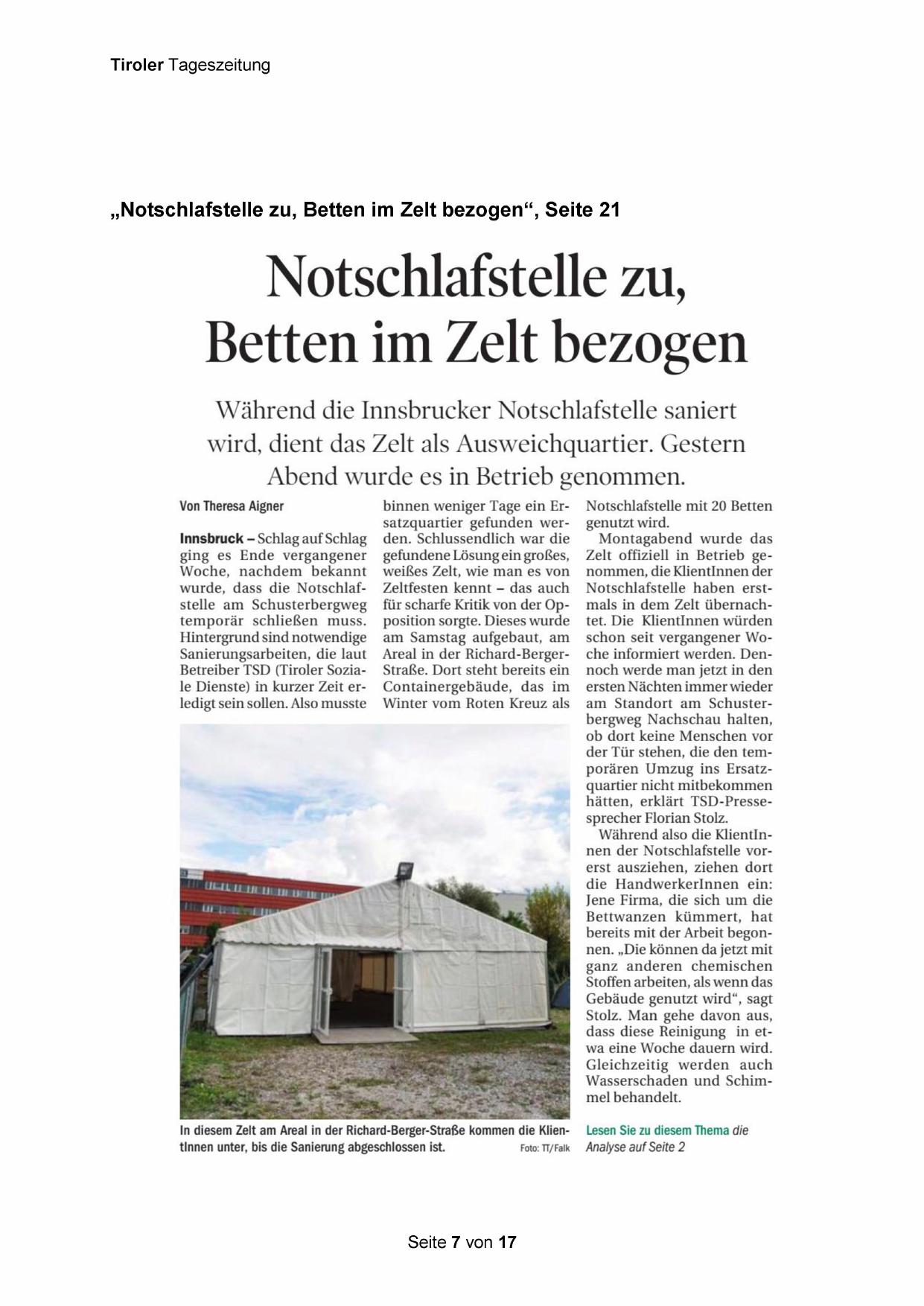 Betreiber TSD (Tiroler Soziale Dienste) in kurzer Zeit erledigt sein sollen. Also musste