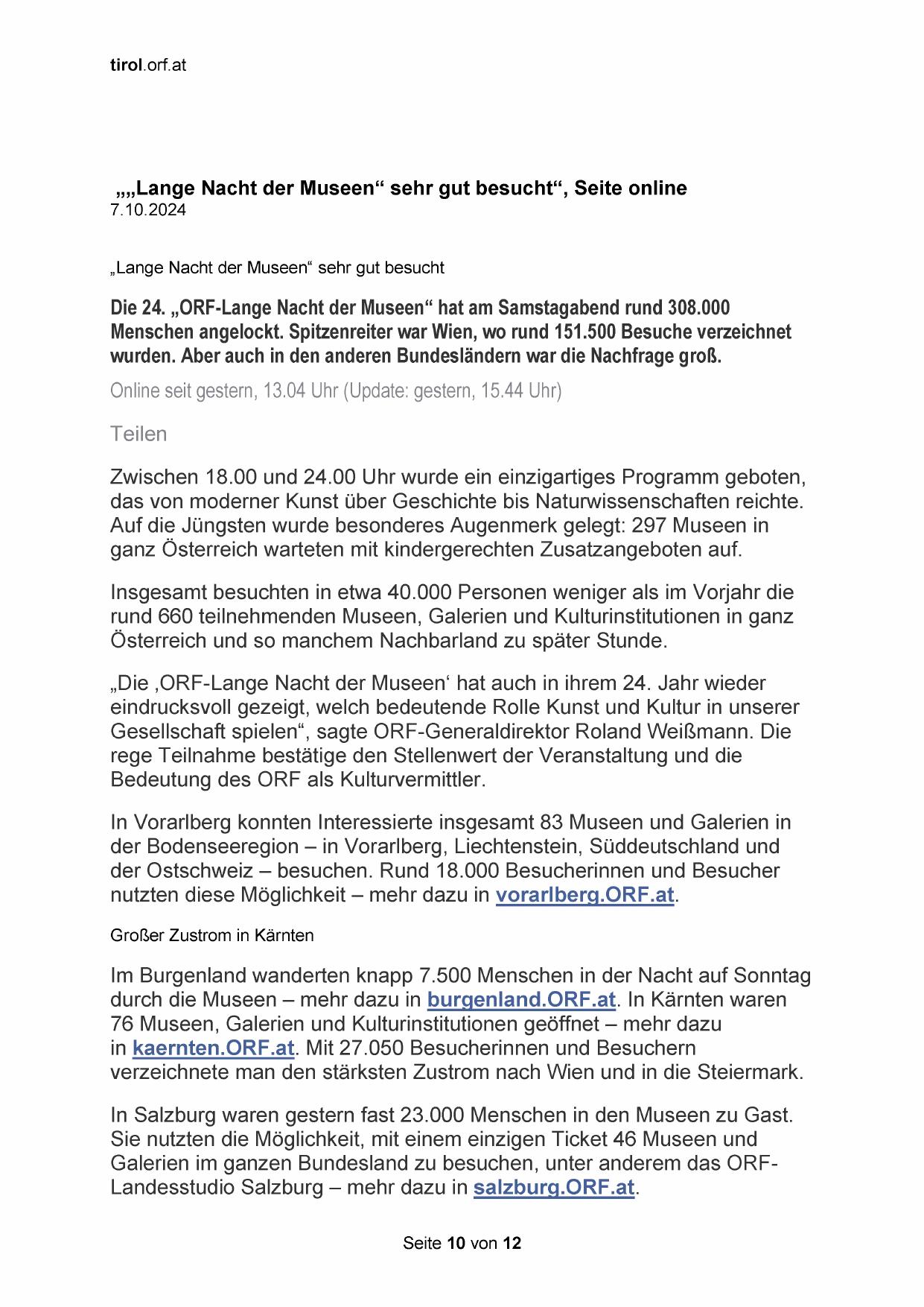 „„Lange Nacht der Museen“ sehr gut besucht“, Seite online