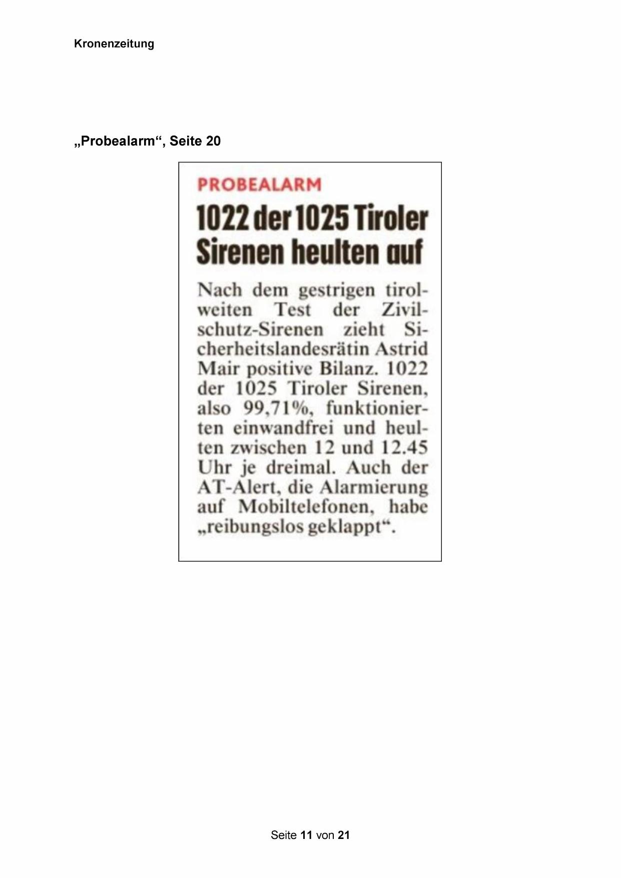 Nach dem gestrigen tirolweiten Test der Ziyılschutz-Sirenen zieht Sicherheitslandesrätin Astrıd