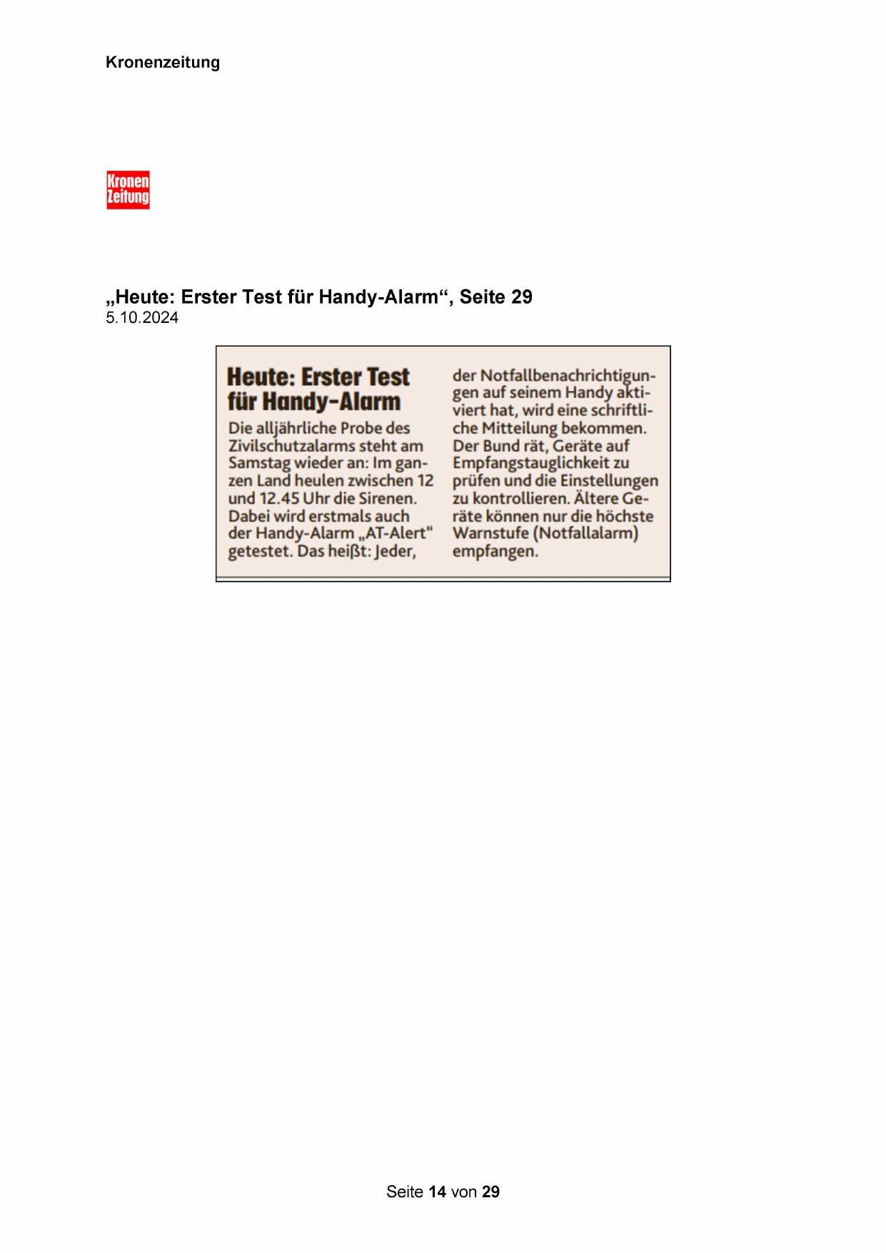 „Heute: Erster Test für Handy-Alarm“, Seite 29